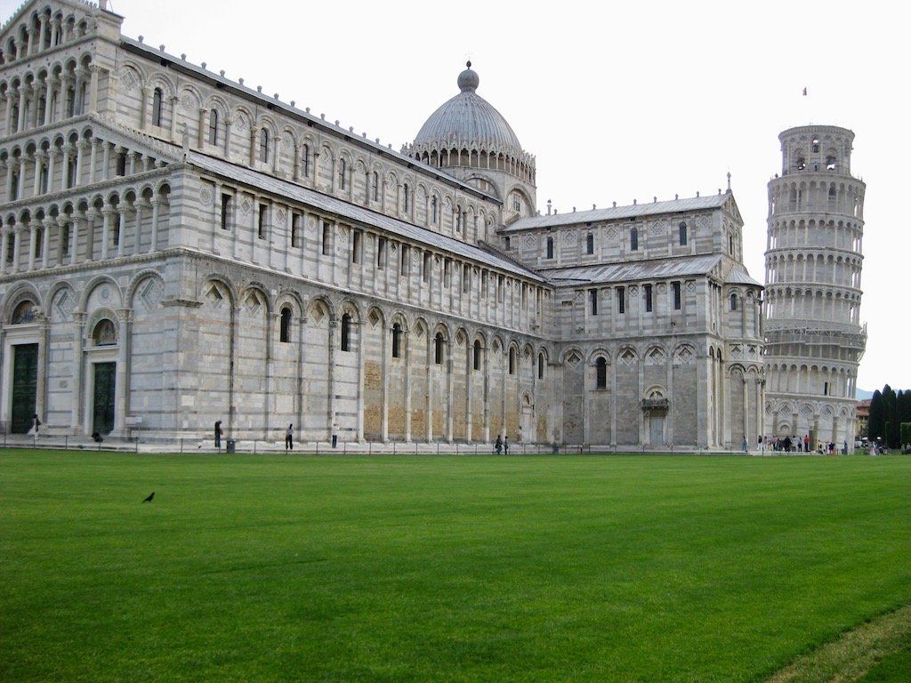 Der Wecker schellt wieder um 6 Uhr. Nach dem Zusammenpacken teilt uns die Vermieterin mit, dass es Frühstück nebenan im Coffeeshop gibt, der öffnet aber erst ab 7.30 Uhr ! Vielleicht !!! Auf Nachfrage bekommen wir bei ihr aber dann doch einen Kaffee, auf das in Italien üppige Frühstück nebenan verzichten wir. Wir radeln dann ohne Frühstück los. Bis nach Pisa ist es ja nicht weit. Direkt hinter der alten Stadtmauer sehen wir auch schon die Kirche und den schiefen Turm. Eine Besichtigung kann leider nicht stattfinden, da alles erst um 10 Uhr öffnet, so lange wollen wir nicht warten, also alles nur von außen anschauen.