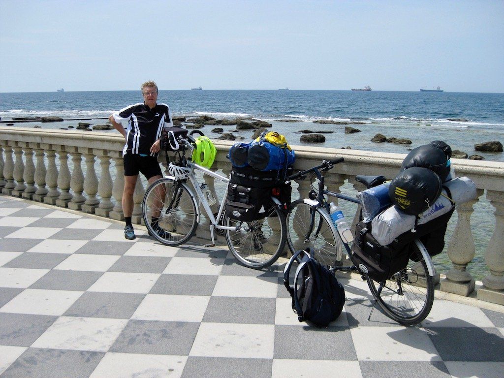 Nach einer kurzen Besichtigung geht es raus aus der Stadt in Richtung Meer. Wir radeln am Meer entlang durch langgezogene Touristenorte. Hier möchten wir nicht unbedingt Urlaub machen. Eine Bettenburg nach der Anderen. Zumindest bekommen wir hier erst einmal Frühstück, genau ein Sandwich. Nicht wirklich lecker ! Es geht weiter in Richtung Livorno durch den Industriehafen, auch hier ist es nicht wirklich schön. Der Verkehr hat mächtig zugenommen, die Autofahrer halten allerdings mächtig Abstand zu uns und sind sehr rücksichtsvoll. In Livorno am Meer machen wir erst mal eine Pause, hier ist es ganz nett.
