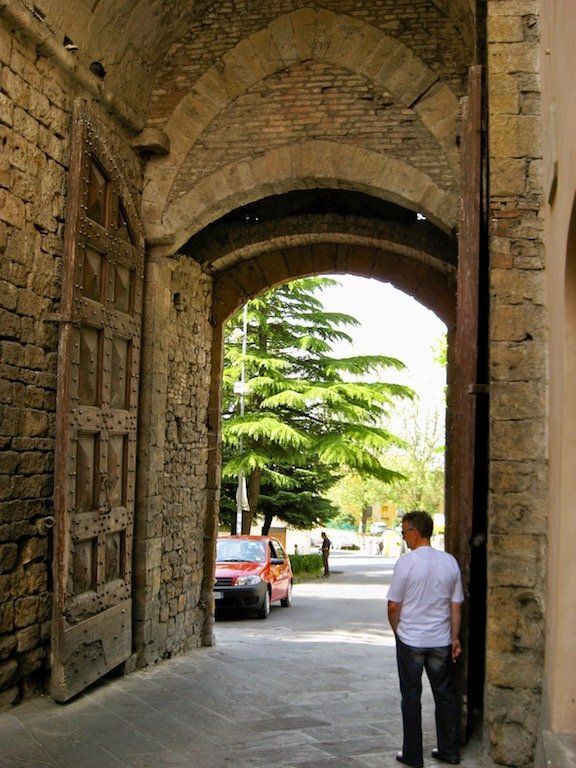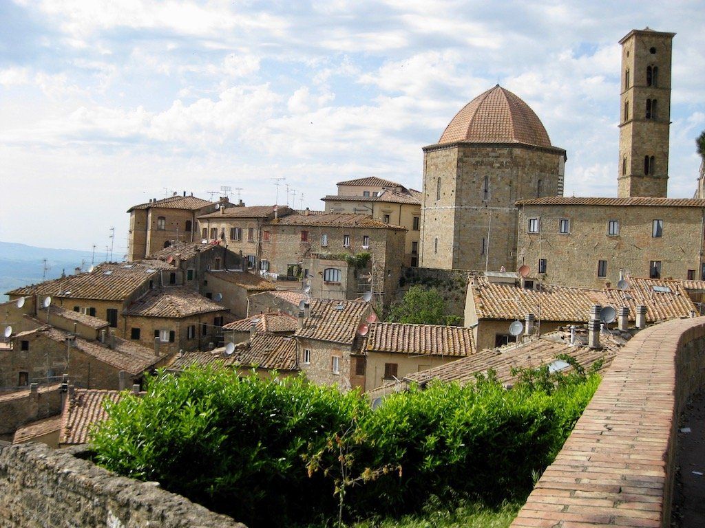 Wir werden um 6.30 Uhr wach. Das Zelt ist nass und muss erst mal getrocknet und die Sachen müssen wieder verpackt werden. Um 8.15 Uhr brechen wir dann auf. Nach 4 Kilometern gibt es erst einmal Frühstück. Wir haben Salami und Brot gekauft, Cappuccino machen wir selber. Die Fahrt verläuft dann über ruhige Straßen und durch schöne Landschaft. Wir biegen dann vom Meer ab in Richtung Volterra. Es ist in der Zwischenzeit wieder richtig warm geworden. Dann geht es an den Aufstieg nach Volterra. Hier müssen wir auf den nächsten 10 Kilometern 500 Meter hoch. Unterwegs gibt es immer wieder Trinkpausen. Da der Wetterbericht für die Nacht Regen angekündigt hat, nehmen wir ein Zimmer und brechen dann zur Stadtbesichtigung auf. Schon eine tolle kleine Stadt. Wir sind hier auf 500 Meter Meereshöhe und man hat eine tolle Fernsicht. Wir können auch noch einen alten Palazzi besichtigen und bekommen noch eine kostenlose Weinverkostung. Abendessen gibt es dann in einem tollen Restaurant. Auf dem Rückweg zum Zimmer fängt es dann leicht an zu Regnen, die Entscheidung ein Zimmer zu nehmen war also richtig, zumal das Zelt, wie wir gesehen haben, doch wohl nicht so ganz dicht ist. Also nur bei schönem Wetter zelten.