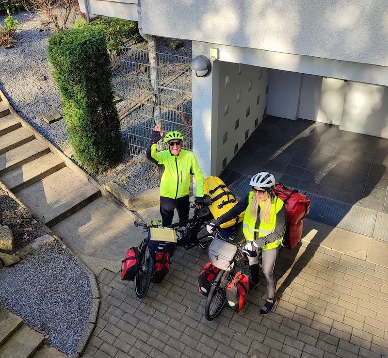 Die monatelange Vorbereitung ist beendet / die Fahrräder in Topzustand / die Gepäckliste ist abgearbeitet / die Geschenke/Glücksbringer verschwinden in den Ortlieb-Packtaschen.