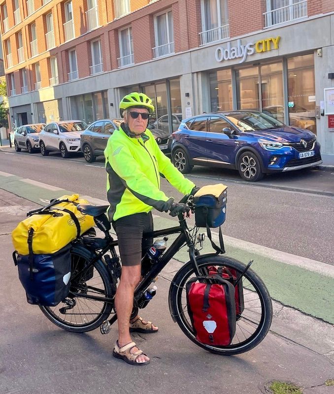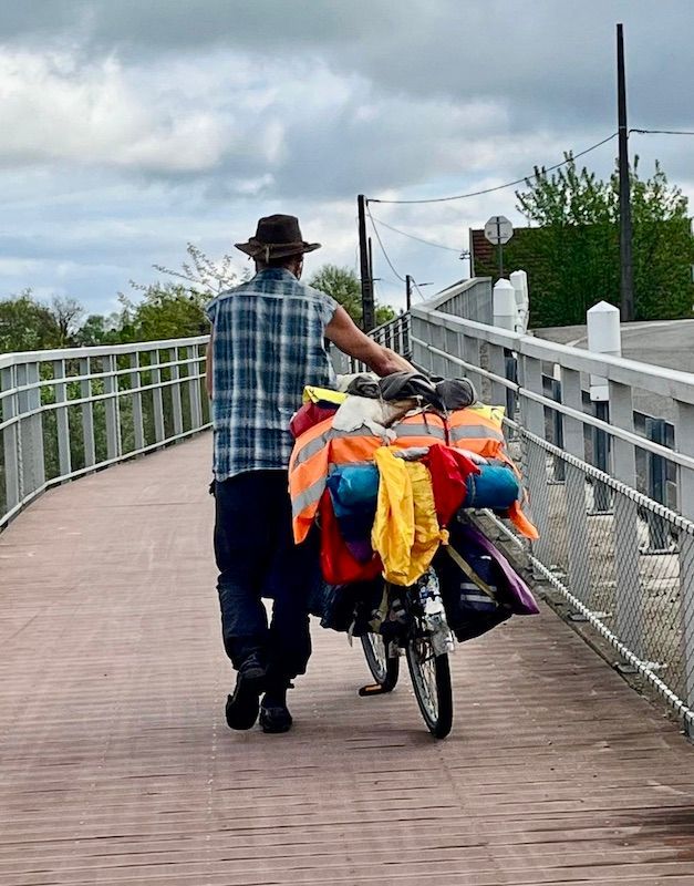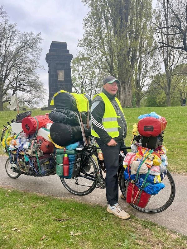 Es ist Markus, seit 13 Jahren unterwegs, beladen mit 230 kg Ballast.
