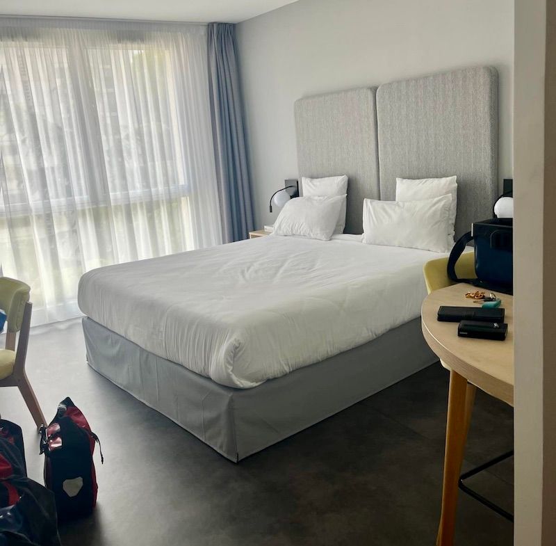 Für die heutige Unterkunft hat sich Ralf was Besonderes ausgedacht: Unser Hotel befindet sich in der 1. Etage eines Koblenzer Hochhauses, parken dürfen wir in der Tiefgarage.