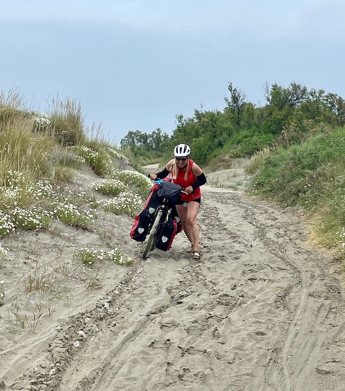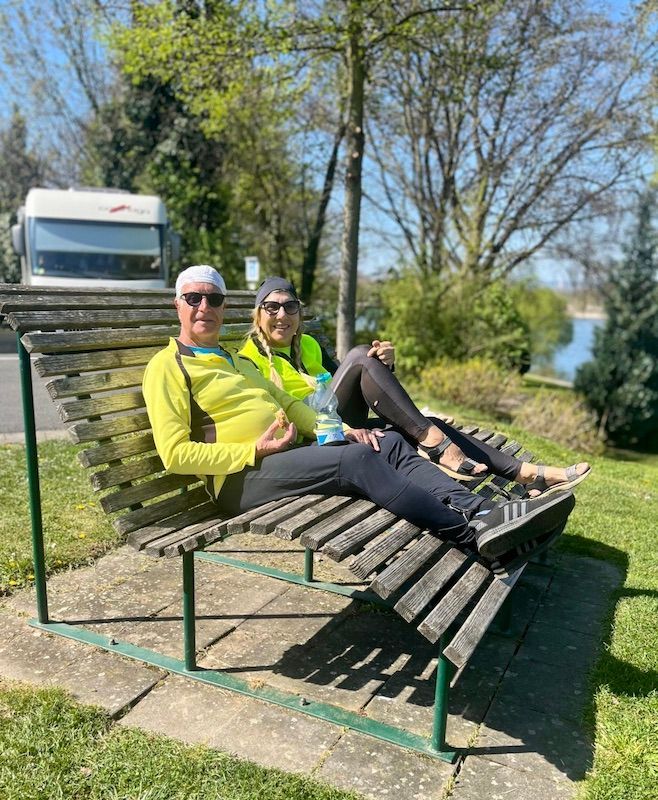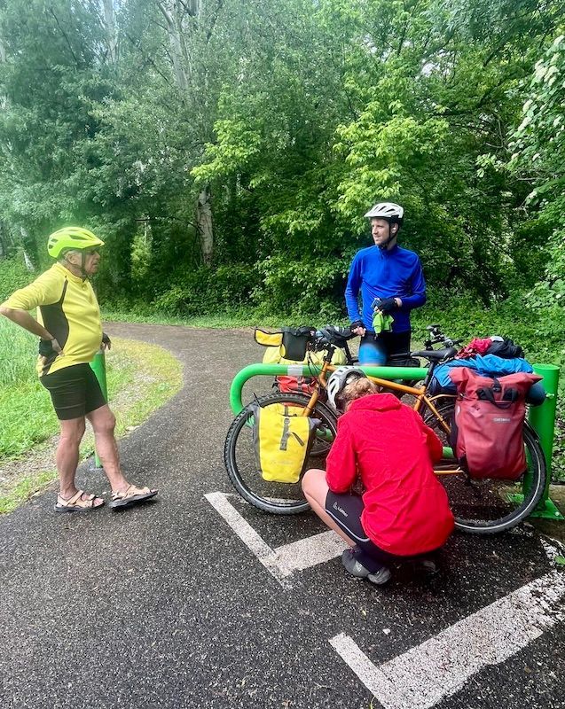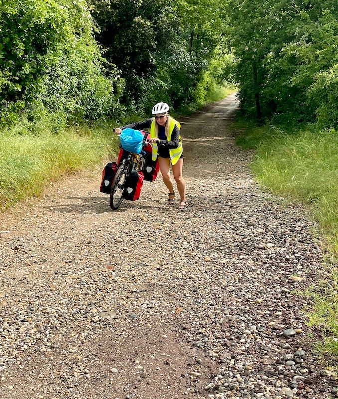 Wir müssen uns erst wieder an das Radeln mit jeweils 30 kg Gepäck und "Bergetappen" gewöhnen.