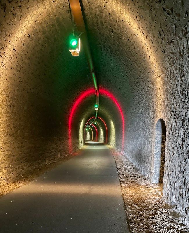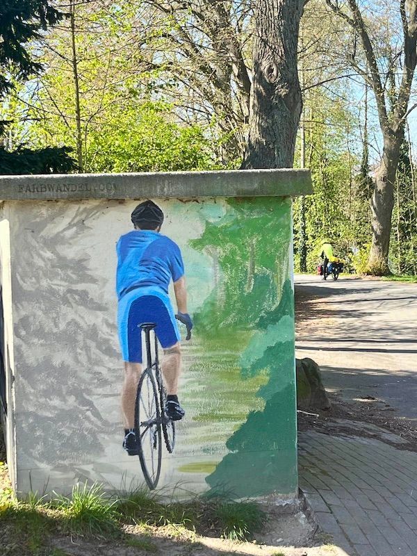 Unterwegs fallen Sigrid Teilstrecken des Radweges auf, die glänzen wie Swarowski-Steinchen.