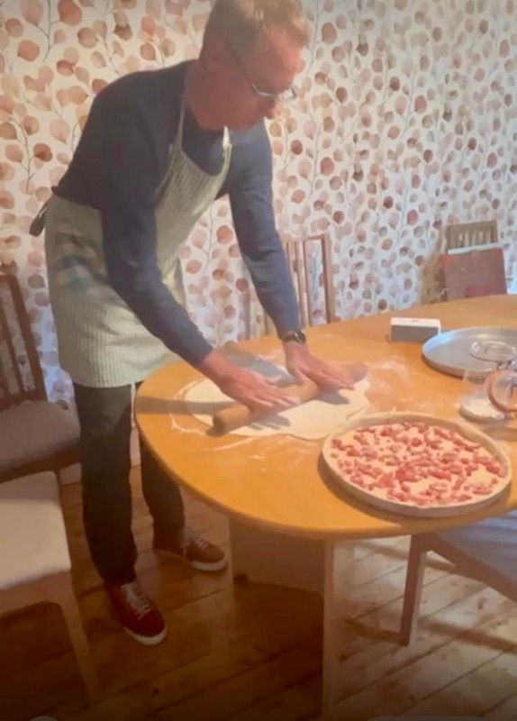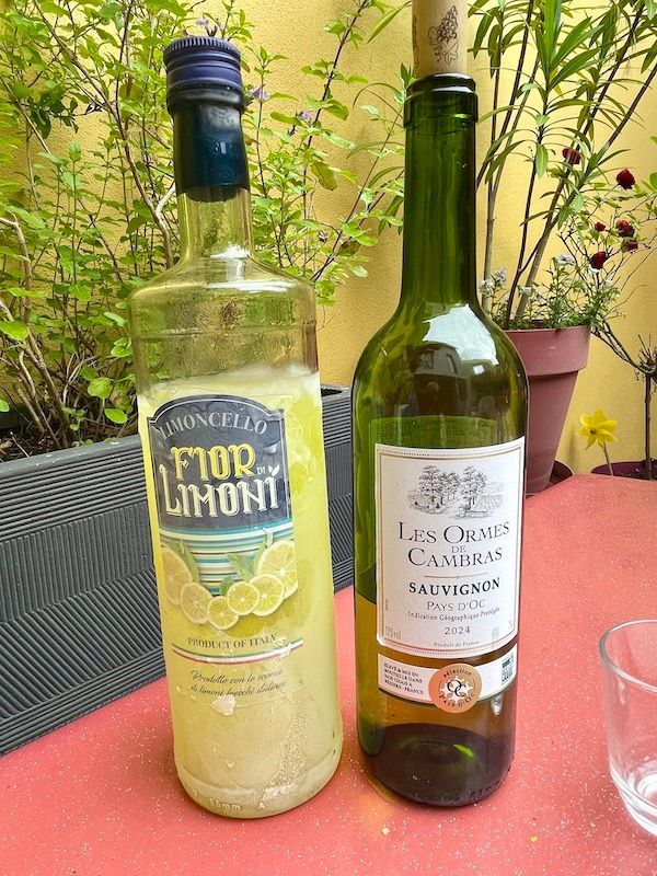 Unsere Vermieter waren bereits am frühen Morgen kreativ: Julia beim Zubereiten des Frühstücks / Ralf mit selbst gestalteten Weinetiketten.
