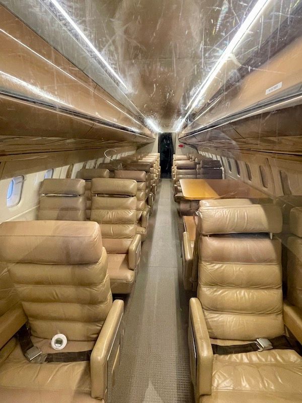 Hier stehen nicht nur beschauliche Wohnmobile. Ein residierender Luxusliner fällt uns gleich auf.