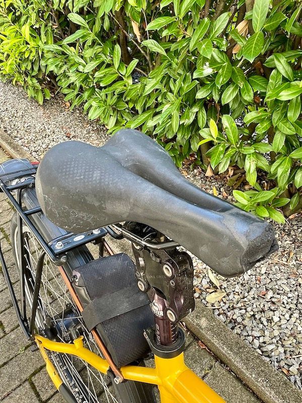 Ralfs Sattelstütze quitscht. Das nervt ihn. Gott sei Dank befindet sich auch Öl in seiner "Werkzeugtasche".