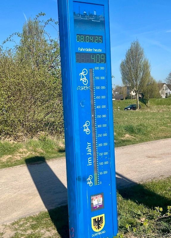 Erst radeln wir Richtung Dortmunder Uni / werden dort "geblitzt" / dann wechseln wir auf den (empfehlenswerten) Ruhrradweg mit seinen meistens gut ausgeschilderten Teerstraßen.