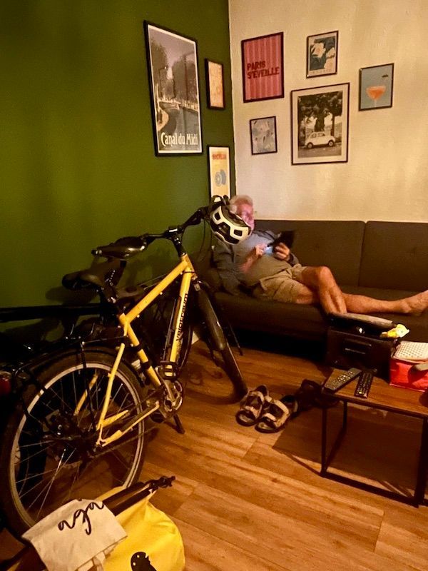 Während Ralf und Marvin den Abend beim Bier und Stories aus der Welt der Radfahrer verbringen, zieht sich Sigrid zum Schreiben zurück.