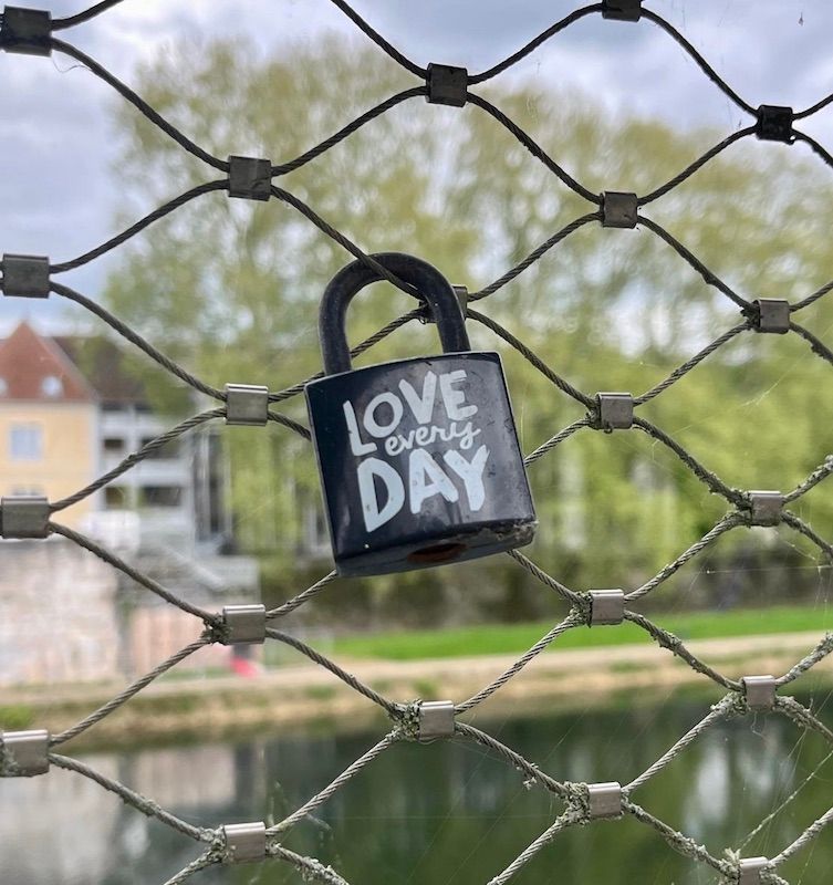 "Irgendwann bringen wir auch mal ein Liebesschloss an," denkt Sigrid bei diesem Vorhängeschloss.