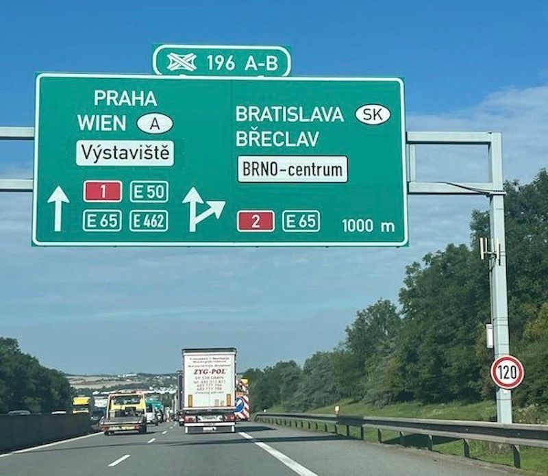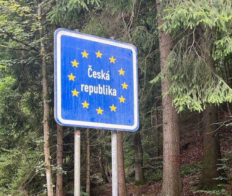 Kurz vor 10 Uhr erhalten wir von unserem Mobilfunkanbieter die Willkommensnachricht: "Vítejte v České republice".