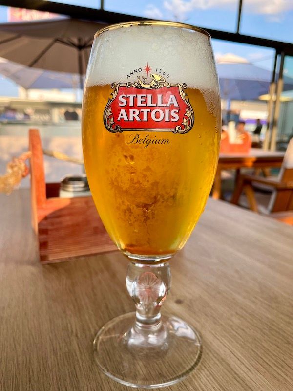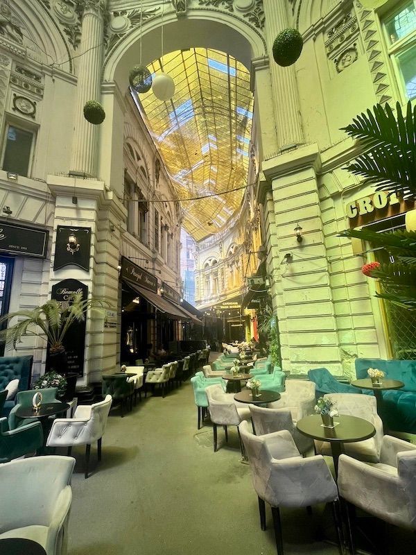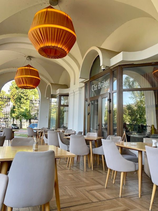 Durch den abendlichen Dauerregen fällt die Außengastronomie aus, der Innenraum füllt sich.