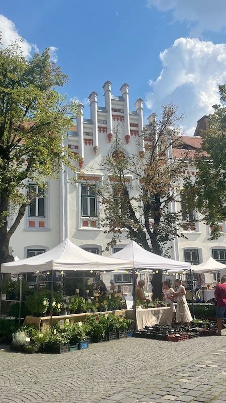 Gegenüber vom "Best Western" wird gerade der Wochenmarkt eröffnet.