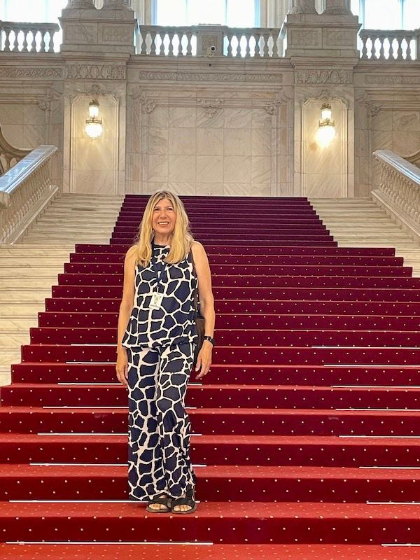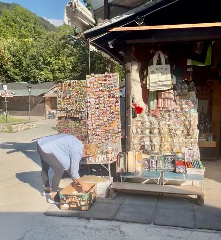 Es ist ihr dritter Besuch und sie begleite ihren blinden (17-jährigen) Sohn, der Teil des hiesigen Projektes "Barrierefreiheit" ist.