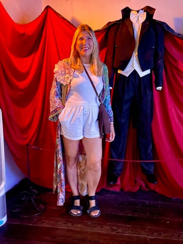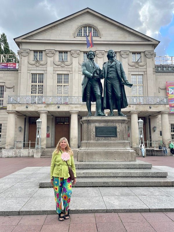 Vor dem "Goethe-Schiller-Denkmal" auf dem Theaterplatz gesellt sich Sigrid neben die best friends Johann Wolfgang und Friedrich.