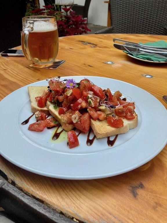 Den ganzen Tag (9 Stunden mit Mundschutz im Zugabteil) hatten wir uns auf Biergartenatmosphäre, leckere/lokale Schmankerl und Frischgezapftes (nach dem Motto: "Man darf die Hopf-nung niemals aufgeben") gefreut.