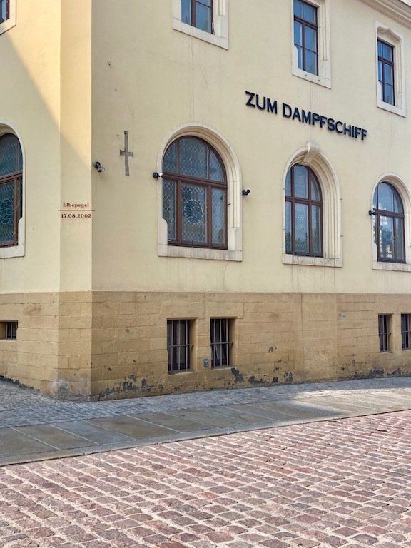 Anmerkung: Vom Kuppelrestaurant habe man am Abend einen spektakulären Blick auf Elbflorenz.