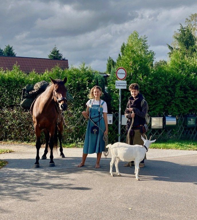 Ihr derzeitiges Domizil sei Königstein (sächsische Schweiz). Von März bis September d.J. sei sie mit ihrem Pferd "Cordelleo" von Basel nach Königstein gelaufen. Erst nur mit Cordelleo (auf deutsch: Löwenherz), dann mit zugelaufener Ziege.