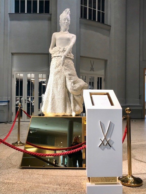 Miss S ist 1,80 m groß und trägt ein mit 8000 von Hand geformten Porzellanblüten verziertes Kleid - entworfen vom Chefplastiker Jörg Danielczyk höchstpersönlich.