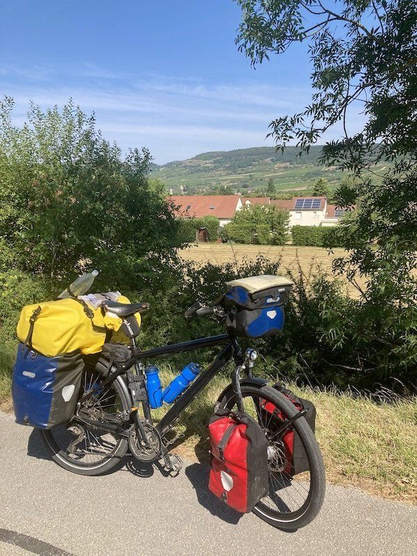 Heute klappte alles hervorragend: gut geschlafen, reichlich gefrühstückt, verabschiedet von unseren Freunden und deren Nachbar. Und unsere Fahrräder der Manufaktur Velotraum rollten wie geschmiert.