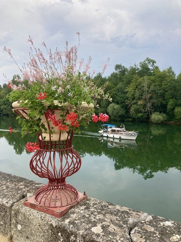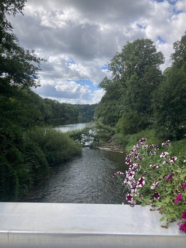 In Sinzig überqueren wir die Ahr - heute ganz friedlich und mit Blumenkübeln dekoriert. 2021 sah's hier ganz anders an.