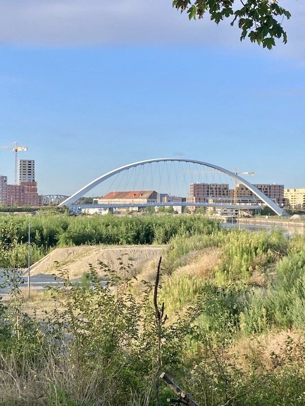 Erst rollen unsere Räder über die Konrad-Adenauer-Brücke.