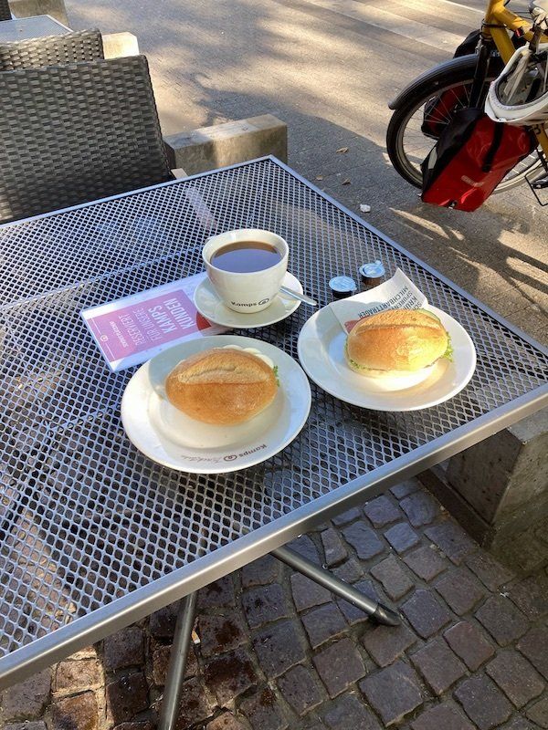 Bevor wir Worms verlassen: Zeit für ein zweites Frühstück.