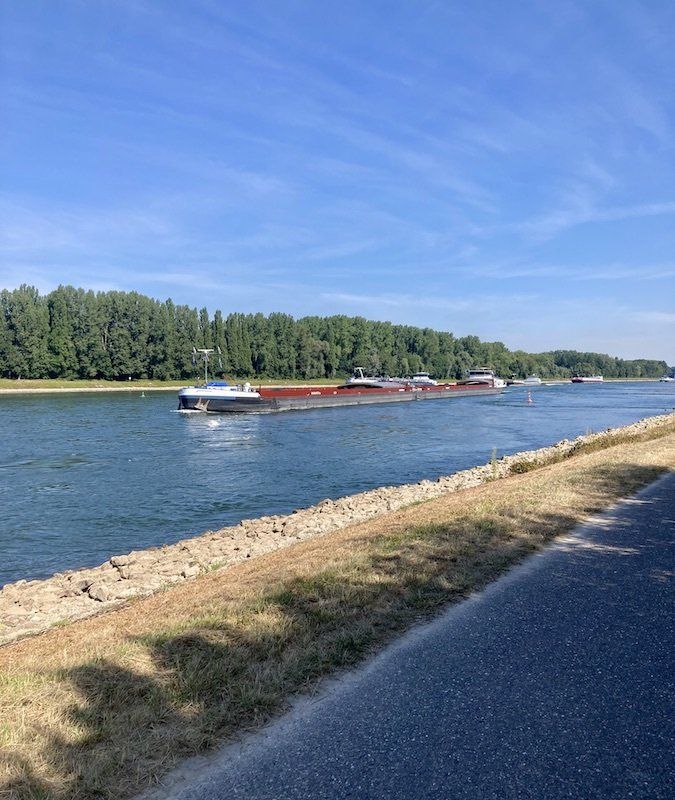Bis Mannheim fahren wir teils an Landstraßen / am Rhein entlang.
