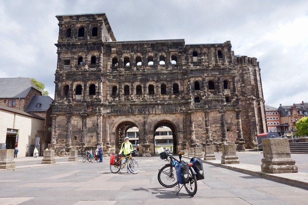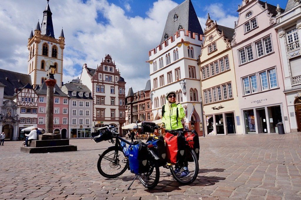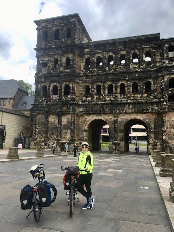 Ich (Sigrid) schiebe mein Fahrrad durch Trier, die Stadt meiner Kindheit und Jugend.