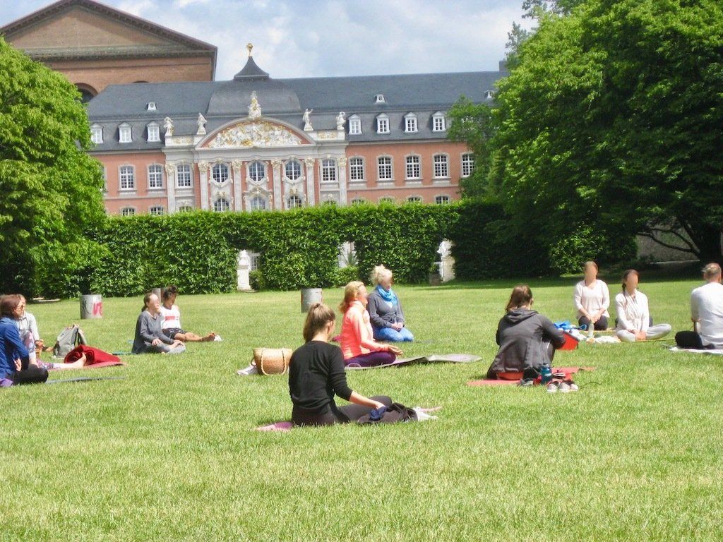 Mir - einer bekennenden Yogini - fiel gleich die Gruppe auf, die entspannt auf die Anweisungen ihrer Lehrerin wartete. Gerne hätte ich mitgemacht.