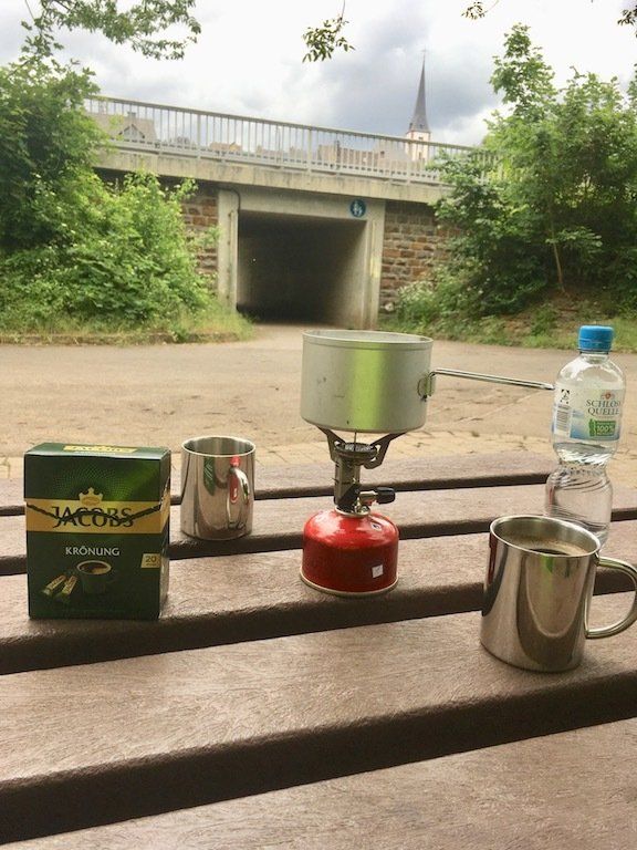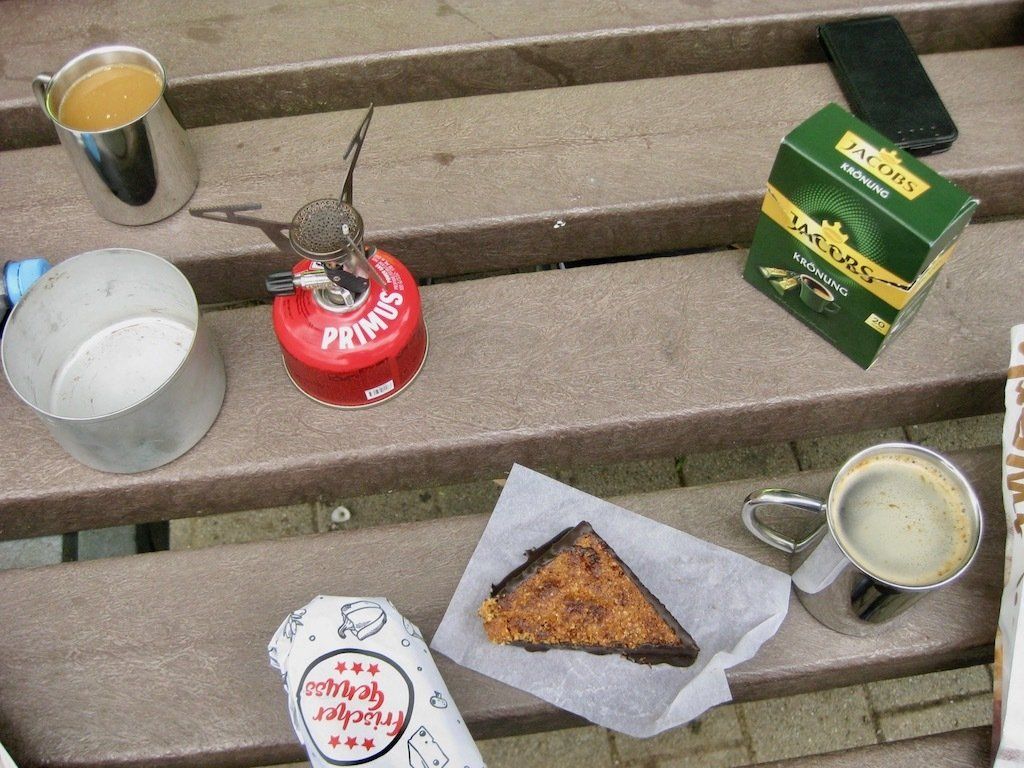 Ralf deckte den Tisch und kochte im mitgenommenen Gaskocher den Kaffee mit dem Wohlfühlaroma.