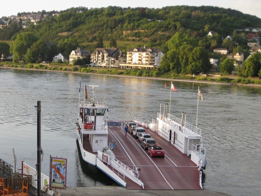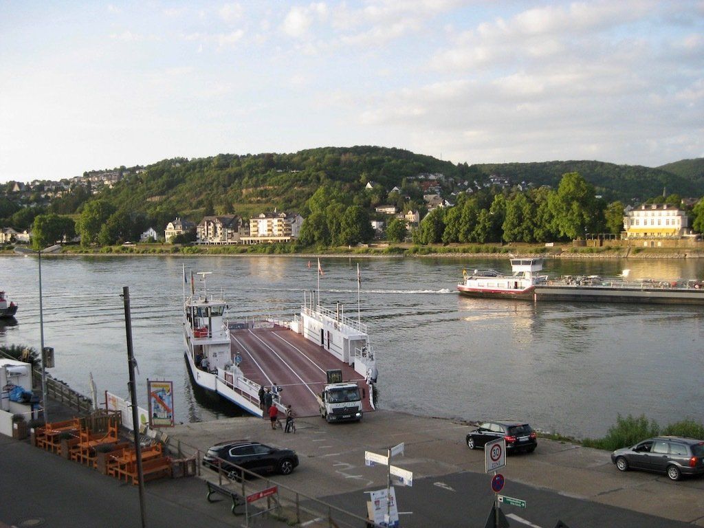 Die Fähre, die Mensch und Fahrzeug im Minutentakt nach Linz befördert, liegt unterhalb unseres Fensters. Ein ständigen Ab- und Anfahren bis 23 Uhr ist möglich.
