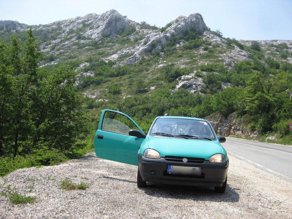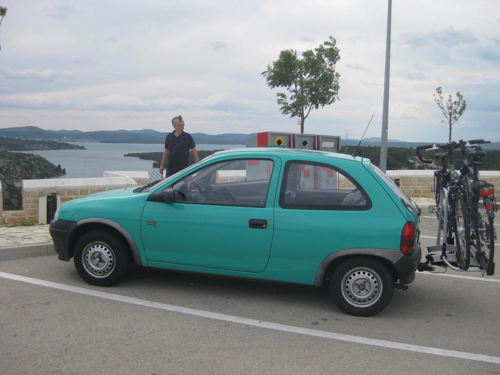 Die Nacht war kurz, die Fahrt sehr lang. Bettruhe am Sonntag war schon um 20.00 Uhr. Nach einigen Stunden schlafen, ging der Wecker um 00:30 Uhr. Wir hatten uns wieder für eine frühe Abfahrt entschieden, da wir nicht in der Dunkelheit in Kroatien ankommen wollten. Auf Grund der Entfernung lagen ja wieder mindestens 16 Stunden Fahrt vor uns. Schnell noch einen Tee und einen Espresso, dann ging es auch schon zu Dieter. Er wartete bereits. Sein Rad auf den Heckträger und es ging bei ihm gegen 01.30 Uhr los. Kurz vor der Autobahn kam seine Frage: Ist die Garage auch zu? Also wieder umgedreht und nachgeschaut. Sie war zu !!! Jetzt konnte es aber wirklich losgehen. Zunächst fahre ich, Dieter macht es sich auf dem Beifahrersitz bequem und schläft noch ein bisschen. Wir wechseln uns dann in regelmäßigen Abständen mit dem Fahren ab. Die Fahrt verläuft sehr gut, es ist relativ wenig Verkehr. Gegen 13.00 Uhr erreichen wir die Grenze nach Kroatien. Der Wind nimmt zu, es ist hier auch kälter als in Deutschland. Noch eine kurze Pause auf dem Parkplatz Krka. Gegen 17:15 Uhr sind wir in Nemira. Wir bekommen das gleiche Zimmer wie letztes Jahr und zur Begrüßung gibt es wieder etwas Flüssiges. Der Wind hat stark aufgefrischt. Bura !!! Hoffentlich ist das Wetter morgen besser, nicht so windig. Wir gehen noch zum Essen, bevor um 21.45 Uhr Bettruhe ist. Es war ein langer Tag. Morgen geht es los !!!