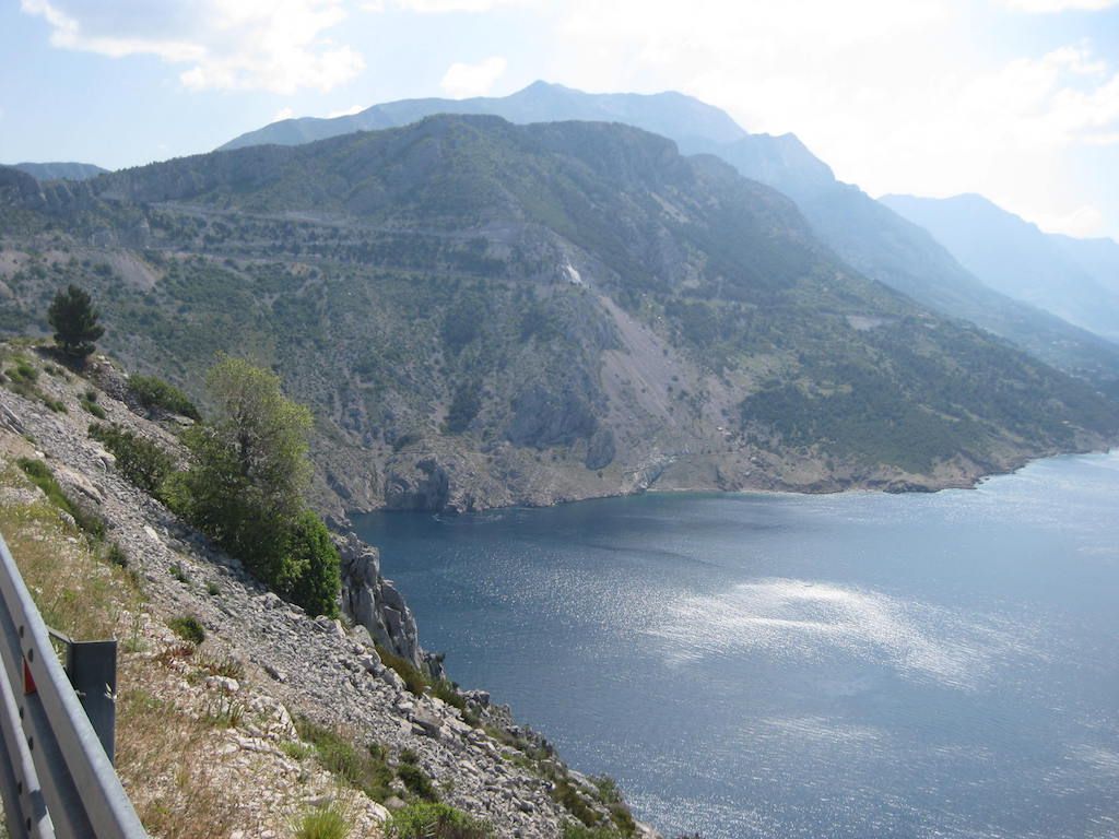 Nach gutem Schlaf und 2 Cappuccino mit Vollkornkeksen geht es um kurz nach 8 Uhr los. Aus Ulcinj raus erfolgt ein 7 Kilometer langer Anstieg. Es folgte dann ein stetiges Auf und Ab mit mehreren langen Anstiegen, die alle im Bereich von 7 – 8 % lagen. Das Wetter ist richtig super, warm und blauer Himmel. Wir radeln größtenteils an der Küste entlang.