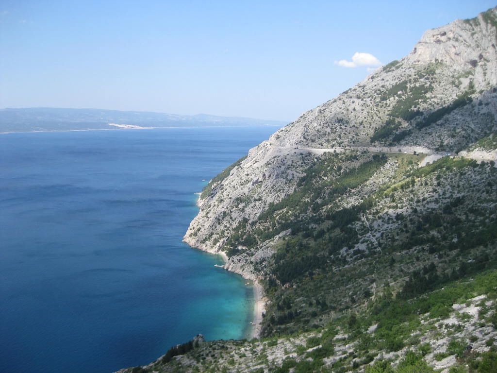 Wir sind kurz vor 07.00 Uhr wach und haben gut und tief geschlafen. Das Wetter ist gut, der Wind ist weg. Es kann losgehen !!! Um 08.00 Uhr geht es in die Garage, die Räder aufrüsten. Lenkerhörnchen anschrauben, das Gepäck anhängen. Vor der Abfahrt gibt es das obligatorische Abfahrtsfoto. Um 09.00 Uhr geht es dann endlich los. Die erste Trinkpause ist in der Bucht von U. Vrujla. Es läuft super. Trinkwasser wird in Makarska das erste Mal nachgefüllt. Dann noch eine kurze Pause an der Hafenpromenade.