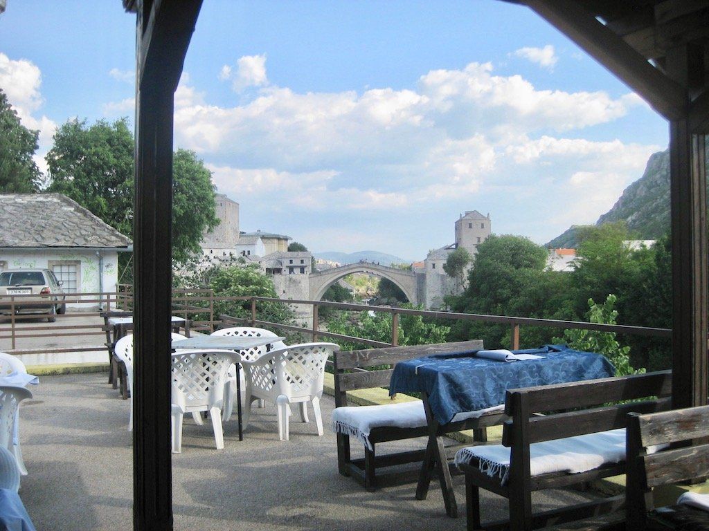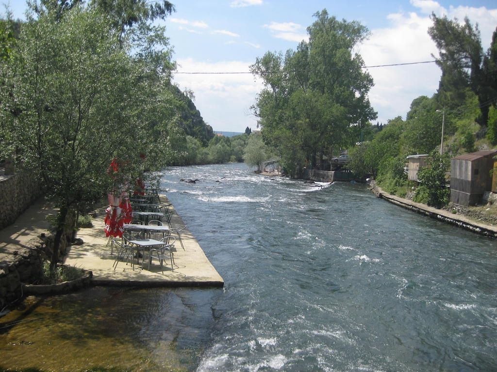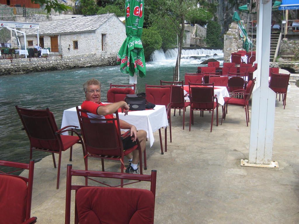 Zum Abendessen ging es ins Restaurant Kuluk in der Altstadt in der Nähe von Stari Most. Hier hatten wir 2008 hervorragend gegessen, diesmal aber nicht. Das Essen ist nicht gerade gut, die Bedienung noch schlechter, man hatte offensichtlich keine Lust. Haben der Besitzer in der Zwischenzeit gewechselt? Zur Entschädigung gab es dann aber noch einen Wein auf der schönen Terrasse von unserem Quartier mit Blick auf die Neretva. Netter Ausklang eines schönen Tages.