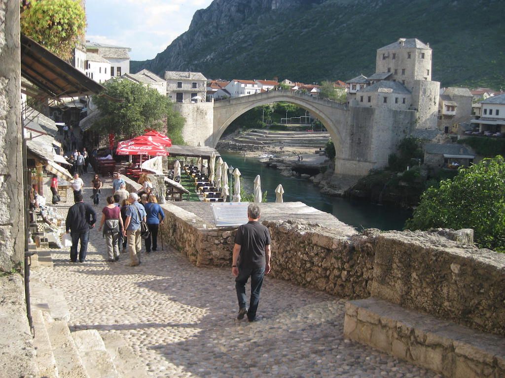 Nach dem Essen und ein paar Fotos gehen wir die letzten Kilometer nach Mostar an. Hier folgt eine lange gerade Strecke vorbei am Flughafen, diesmal mit extrem starkem Gegenwind. Die letzten Kilometer müssen wir noch einmal kräftig in die Pedale treten. Dank GPS finden wir unsere Unterkunft, die Villa Mostar sofort. Dieses Quartier hatte ich im Internet gesehen und vorgebucht. Das Quartier ist genau so gut wie beschrieben. Sehr netter Gastgeber. Anschließend geht es in die Altstadt. Es ist immer wieder schön hier zu sein.