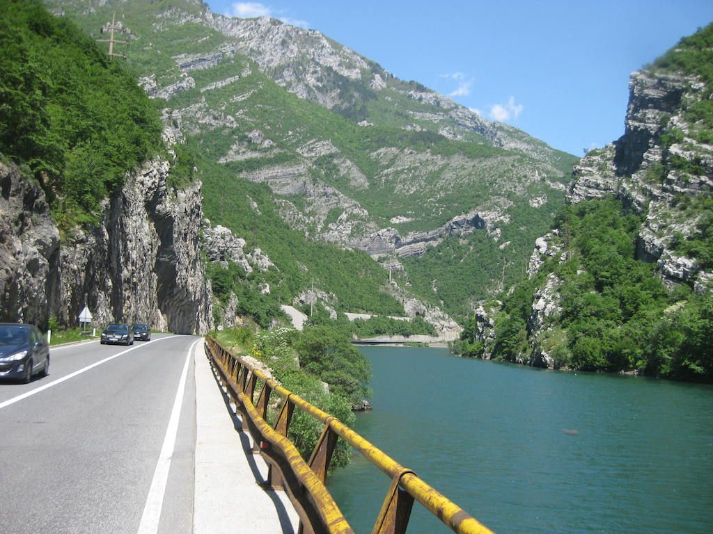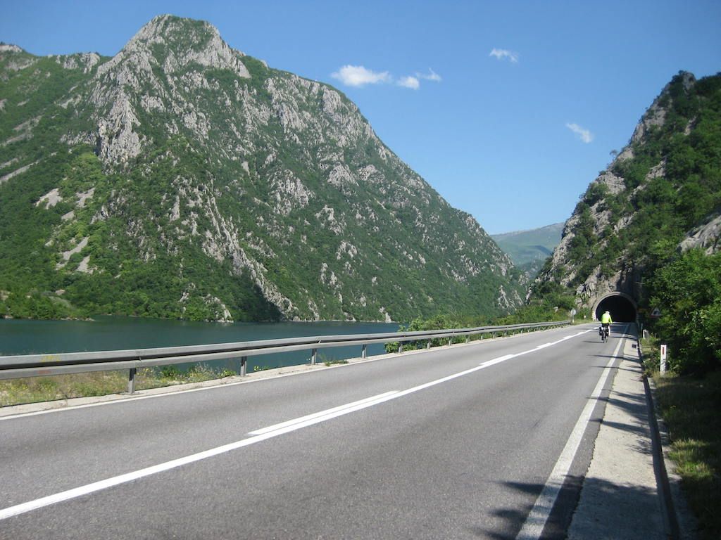 In Höhe der Burg haben wir dann die Flußseite überquert. Hier war die Armut am größten, die Menschen wohnen im Müll. Wir wurden hier an Indien bzw. die Vavelas in Brasilien erinnert. Mit Rückenwind erreichen wir dann schnell die Grenze nach Montenegro. Kurz hinter der Grenze gibt es dann in einem Supermarkt erst einmal neue Verpflegung. Hartwurst, Brot und neue Getränke. Danach machen wir uns auf den letzten Abschnitt in Richtung Ulcinj. Einige kleine Anstiege sind noch zu bewältigen.