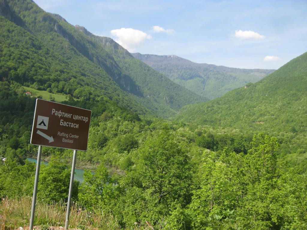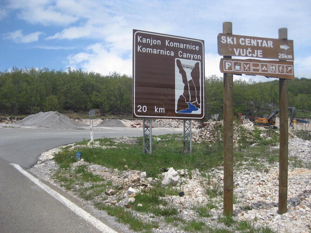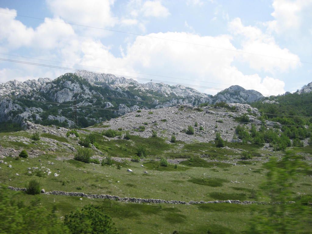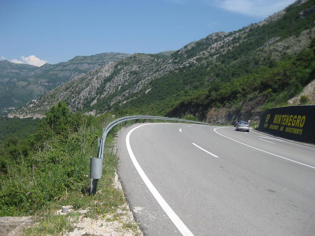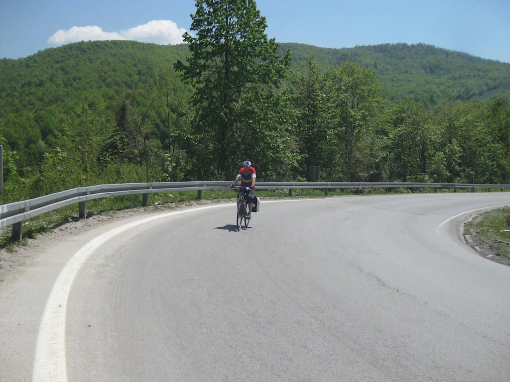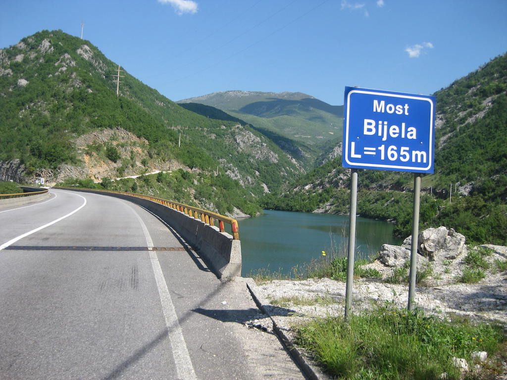 Nach 40 Kilometern hatten wir schon 800 Höhenmeter auf dem GPS. Das Wetter besserte sich zusehends. Unterwegs noch mal eine Pause. Hier stellte Dieter fest, dass seine Cappuccinodose umgekippt war und das Pulver sich in der ganzen Packtasche verbreitet hatte. Zum Glück war die Tasche dicht, sonst hätten wir nach dem ganzen Regen den Cappuccino aus der Tasche schlürfen können. Die Fahrt nach Niksic zog sich, als wir dort waren, lagen wir bei fast 70 Kilometern. In Niksic haben wir erst einmal den Weg in Richtung Danilovgrad gesucht. Fast wären wir auf der Autobahn gelandet, haben dann aber doch die alte Straße gefunden. Nach Niksic ging es zunächst erst wieder ein klein wenig in die Berge, dann folgte ab Bogetici eine Abfahrt aus 800 Metern Höhe in die Talebene. Die Abfahrt war zunächst ein Traum, nur auf halber Höhe verfolgten uns zwei Hunde, die neben dem Rad versuchten, nach uns zu schnappen. Zum Glück sind sie uns nicht ins Rad gesprungen und wir waren schneller und hatten mehr Ausdauer. Die Nackenhaare standen uns aber ganz schön zu Berge. Es ging dann auf ziemlich ebener Strecke bis Danilovgrad. Hier bekamen wir dann einen Tipp für das Motel Perjanik, 4 Sterne. Super tolles Zimmer und noch besseres Essen für wenig Geld. Das war bislang das beste Essen, was wir auf allen Radtouren bekommen haben. Zum Abschluss gab es noch einen Wein im T-Shirt auf dem Balkon. Kein Vergleich zum gestrigen Abend bei Eiseskälte.