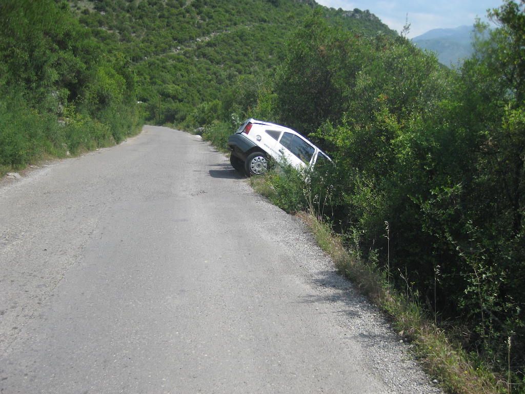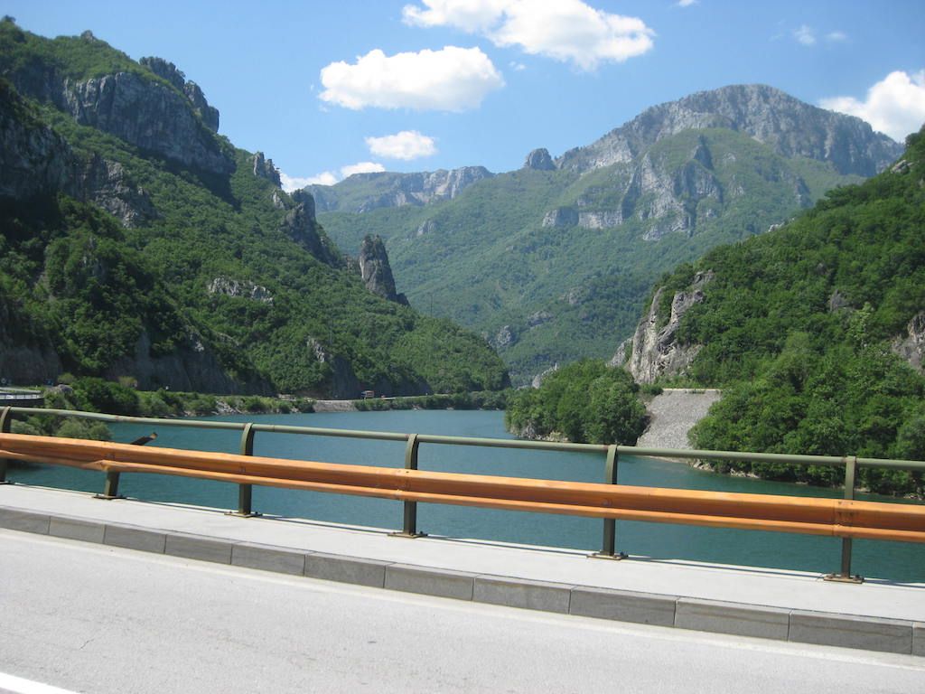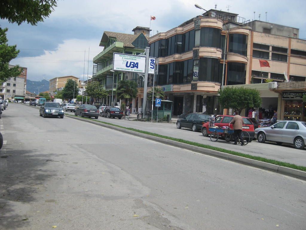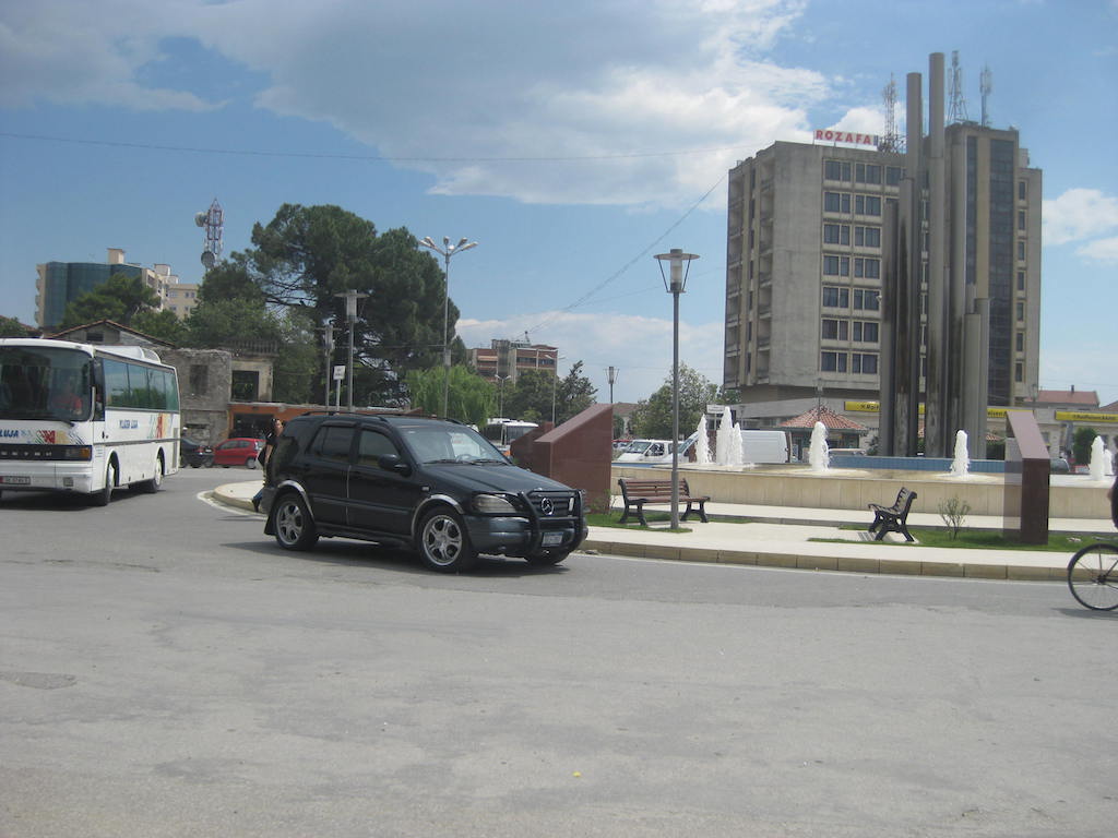 Die Einreise ist kein Problem. Den Pass vorgelegt, einen Stempel und schon sind wir drin. Drin im wahrsten Sinn des Wortes: Im Schlamassel !!! Schotterstrecke, die Straße wird neu gemacht, aber immer nur stückchenweise. Dafür ist aber die ganze Straße aufgerissen und Schlaglöcher hat sie auch. Schlaglöcher ? Die ganze Straße besteht nur aus Schlaglöchern. Das erste, was uns in Albanien begegnet, sind Schweine, die frei auf der Straße herumlaufen. Müll wird auch am Straßenrand gesammelt, nur wird er hier wohl nicht abgeholt und vergammelt und riecht. Unterwegs gibt es in einem kleinen Restaurant erst einmal etwas zu trinken. Cola ist immer gut für Radfahrer. Zucker gibt Energie. Als wir die nächsten beiden Dosen bestellen wollen, gibt es nur noch eine Cola, ausverkauft. Nach der kurzen Pause geht es weiter. Es folgte dann eine Mördertour bis nach Shkoder. Die Schotterpiste nahm kein Ende. Dieter meinte, die längste Baustelle Europas. Nur wurde an den größten Teilen nicht gebaut. Schotter mit kurzen Teilen Asphalt, der aber genauso tiefe Löcher aufwies wie die Schotterpiste. Eine harte Probe für die Räder und unser Material. Unterwegs immer wieder freundliche Menschen und fröhliche Kinder, aber auch viel Armut. Durch Shkoder sind wir dann nur durchgefahren. Es war aber teilweise schon ziemlich ungewöhnlich ( Schafmarkt mitten in der Innenstadt ), obwohl Shkoder auch einige schönere Teile hatte.