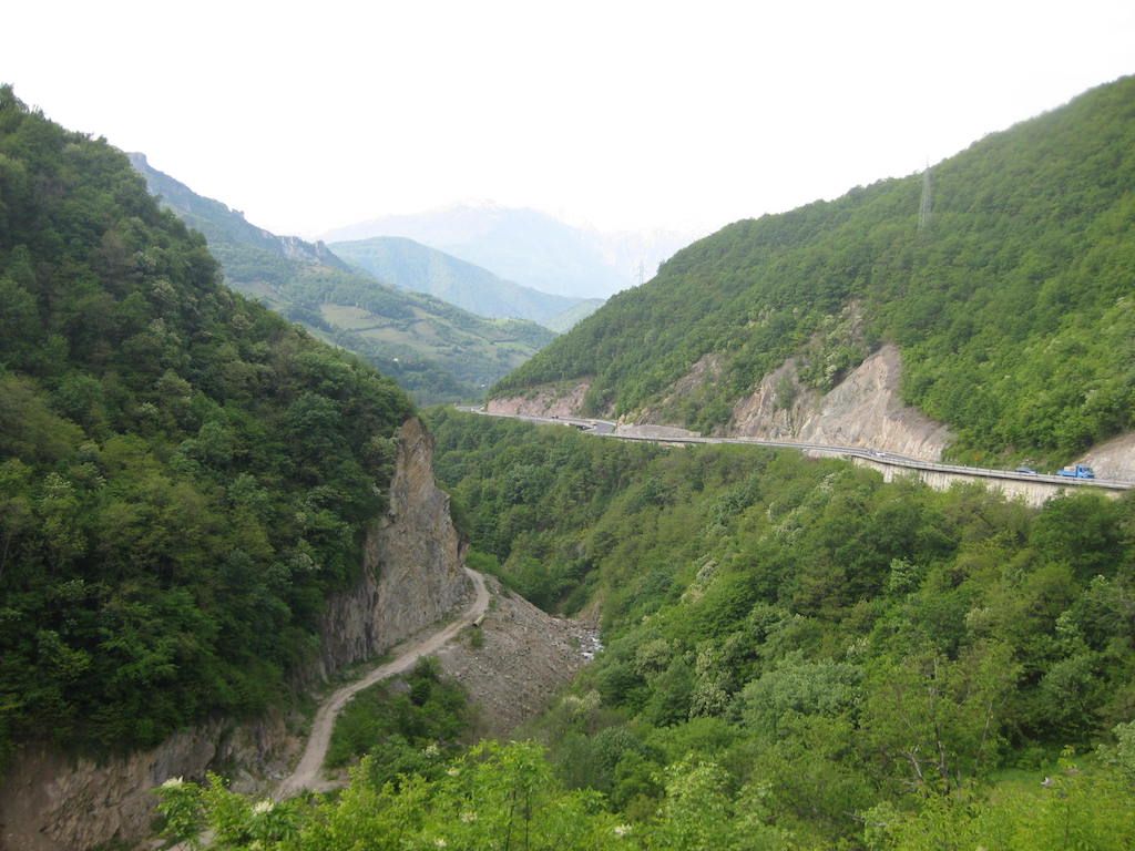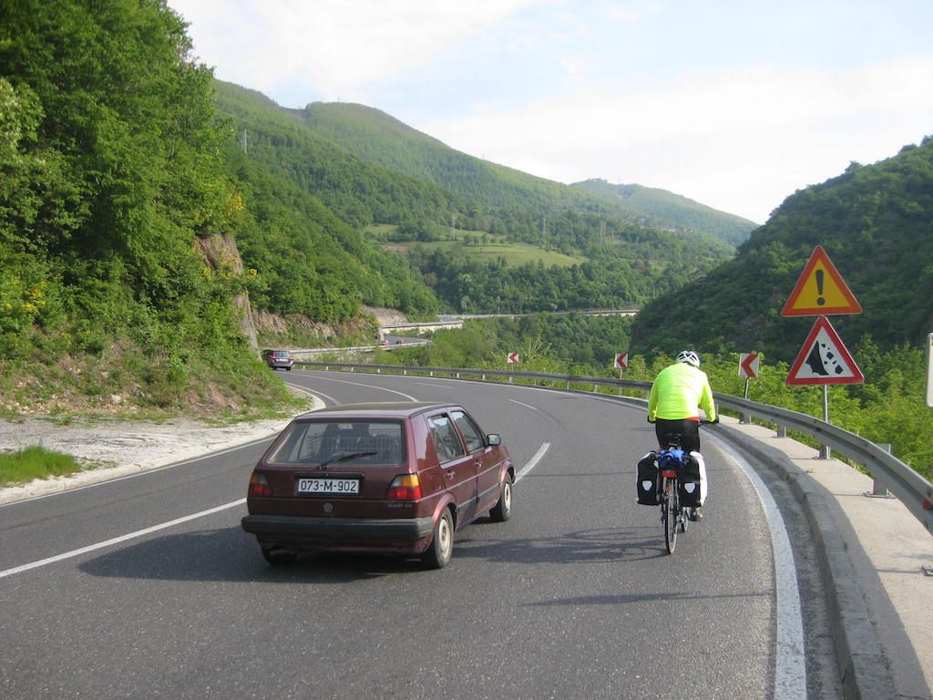 Nach einem umfangreichen Frühstück brechen wir gegen 08.45 Uhr auf. Den Weg aus Sarajevo raus findet das GPS. Wir hätten damit einige Schwierigkeiten gehabt. Sarajevo ist von steilen Bergen umgeben. Das merken wir jetzt auch. Wir müssen auf eine parallel verlaufende Straße, d. h. den Berg rauf. Man, was ist das steil! Es sind zwar nur ein paar hundert Meter, die gehen aber mächtig in die Beine. Je weiter wir aus der Stadt raus kommen, umso mehr nimmt der Verkehr ab.