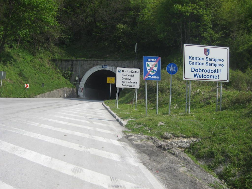 In Jablanica biegen wir in Richtung Sarajevo ab. Hier geht es erst einmal zum Mittagessen und es gibt einen bosnischen Kaffee. Dann ein Tunnel mit 630 Metern Länge. Teilweise fahren / gehen wir auf dem überhöhten Randstreifen. Der ist aber auch nicht ungefährlich, da teilweise Bodenplatten fehlen und dann tiefe Löcher sich auftun. Vor den Tunneln haben wir gehörigen Respekt, da wir von den Autofahrern trotz Warnweste und guter Beleuchtung an unseren Rädern sehr spät wahrgenommen werden, zumal die lieben Autofahrer auch ohne Gegenverkehr nicht allzu großen Abstand halten.