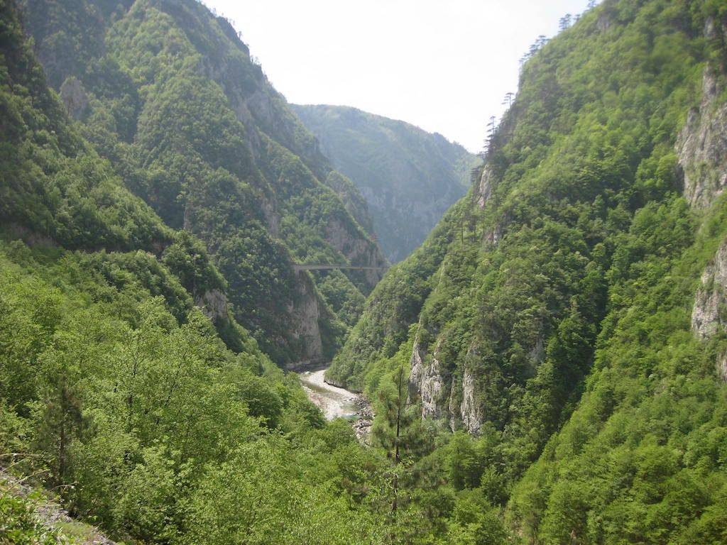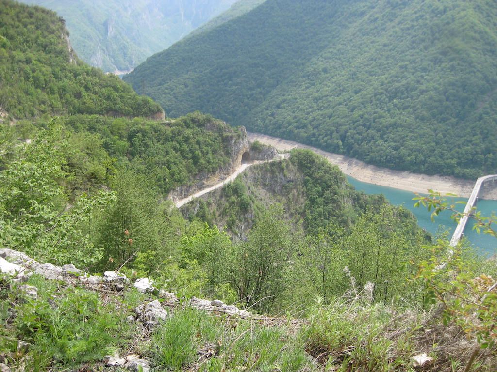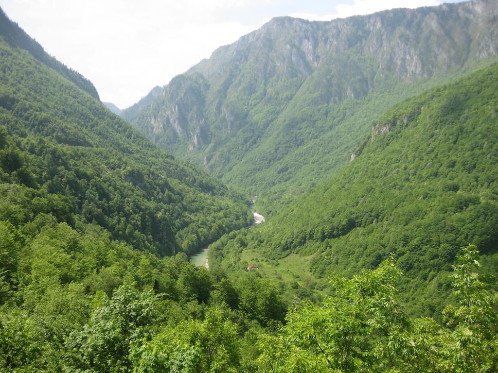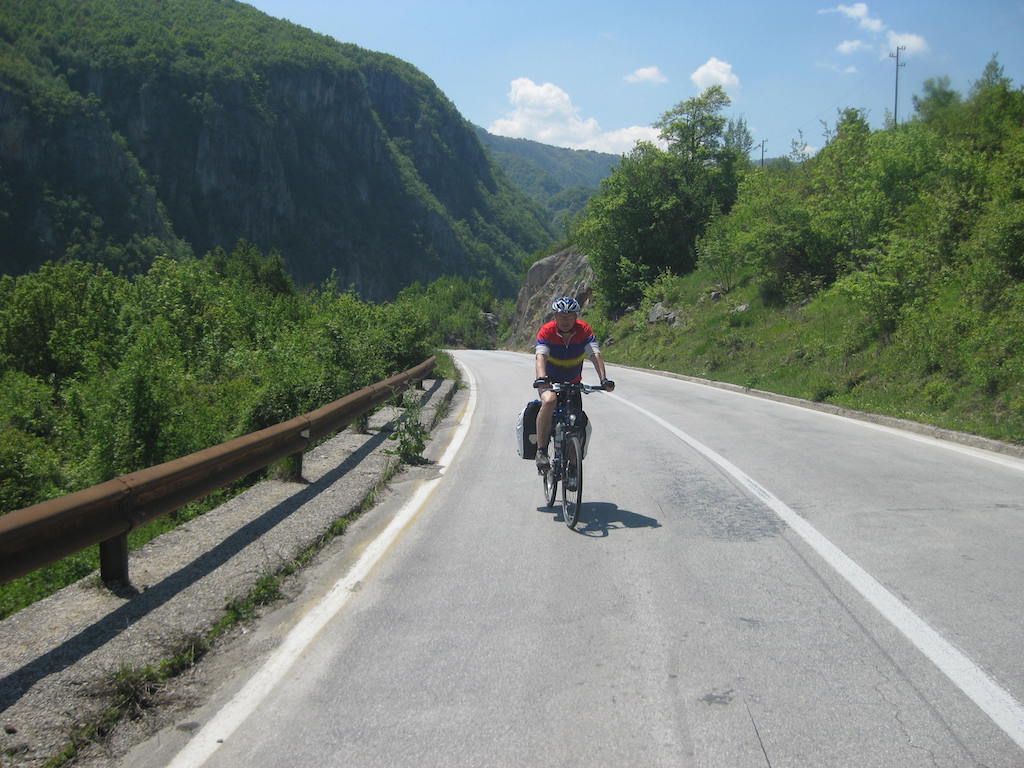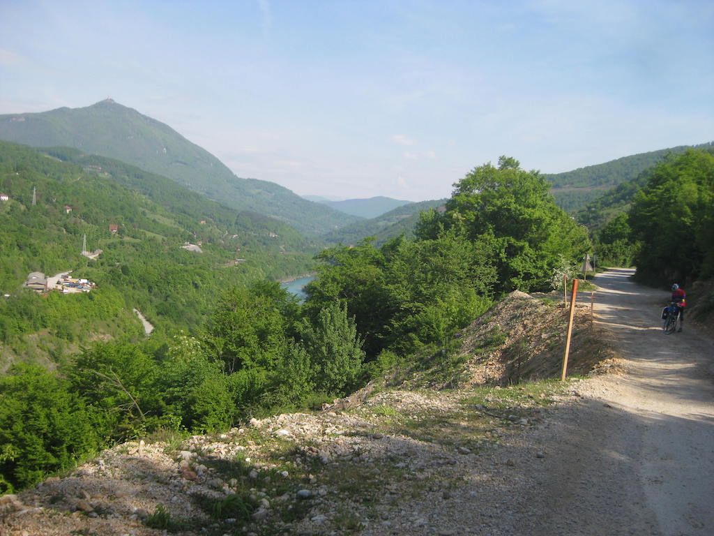 Direkt hinter der Grenze geht es aber erst mal die nächsten Kilometer steil nach oben. Wir schwitzen mächtig. Die Gegend wird dafür aber immer schöner. Traumhafte Blicke in das Tal der Drina.