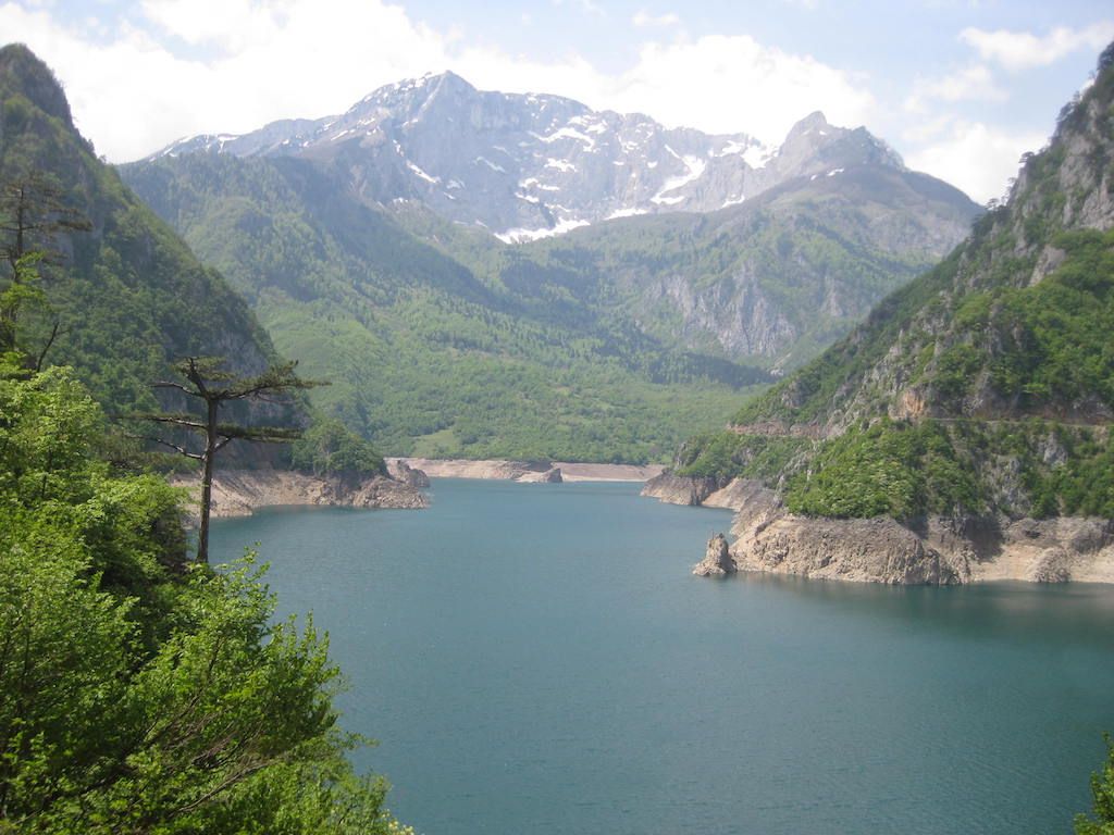 Nach einem ordentlichen Frühstück brechen wir um 08.00 Uhr auf. Wir wollten jetzt über Podgorica und Albanien nach Ulcinj. Da wir nicht mehr über Zabljak und die Taraschlucht fahren, wollen wir jetzt über Albanien ans Meer. Damit würden wir auch den Weg über die Berge einsparen, da der Weg über Albanien flach ist. Bis Podgorica geht es schnurgeradeaus. Die Stadt entwickelt sich mächtig. Viele neue Glasbauten, tolle alte Kirche. Wir fahren aber nur durch, da wir heute eine extrem lange Tagesetappe vor uns haben. Hinter Podgorica geht es kilometerlang an Weinfeldern vorbei in Richtung Tuzi, bis wir auf einer ziemlich unbefahrenen Straße entlang des Shkodersees die Grenze nach Albanien erreichen. Entlang des Shkodersees ein Meer aus Seerosen, die aber noch nicht blühen. Albanien erreichen wir um 11 Uhr.