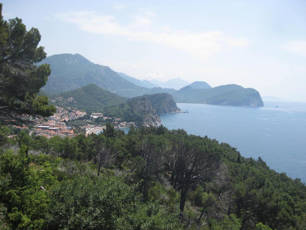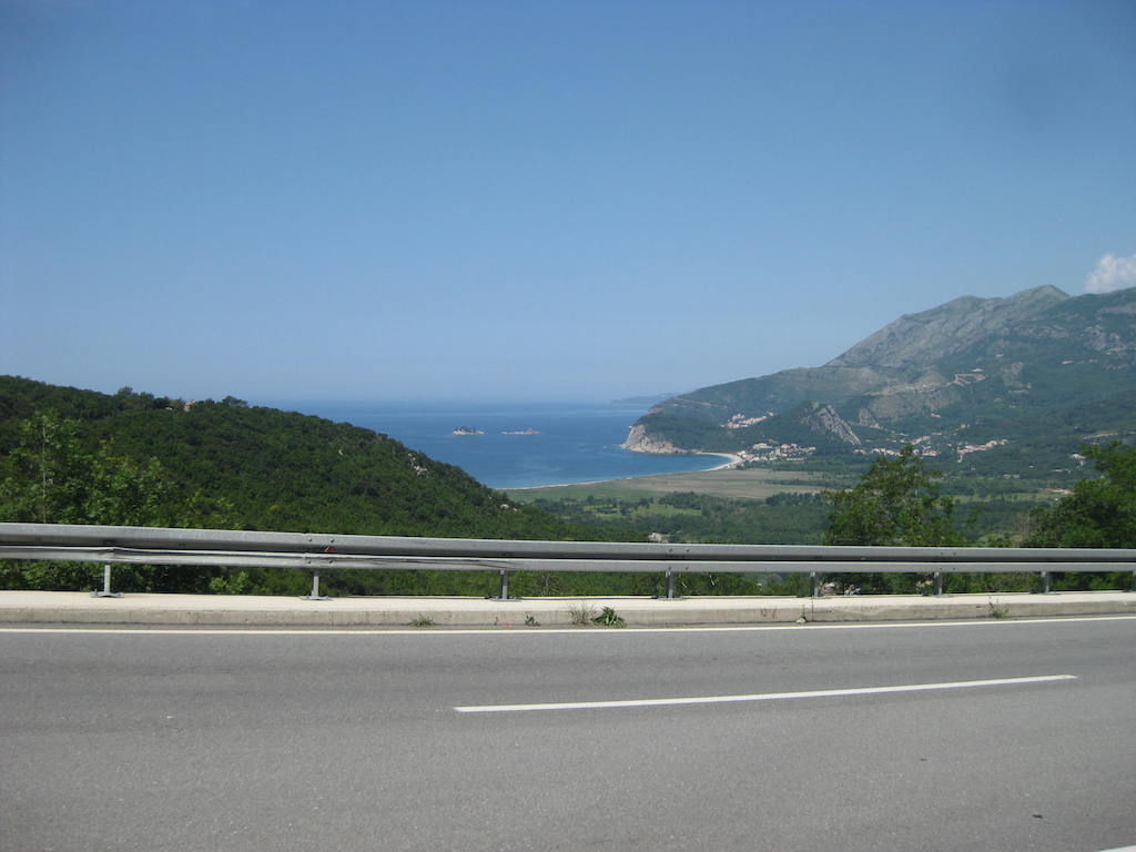Gegen Mittag erreichen wir Sv. Stefan. Kurz dahinter machen wir eine Mittagspause in einer Konoba, es ist jetzt doch mächtig warm geworden. Eine kleine Pause tut ganz gut. Ein leckerer Salat, Cola und Espresso. Nach 1 Stunde geht es weiter. Vorbei an Budva, noch ein Anstieg und die lange gerade Stecke nach Tivat.