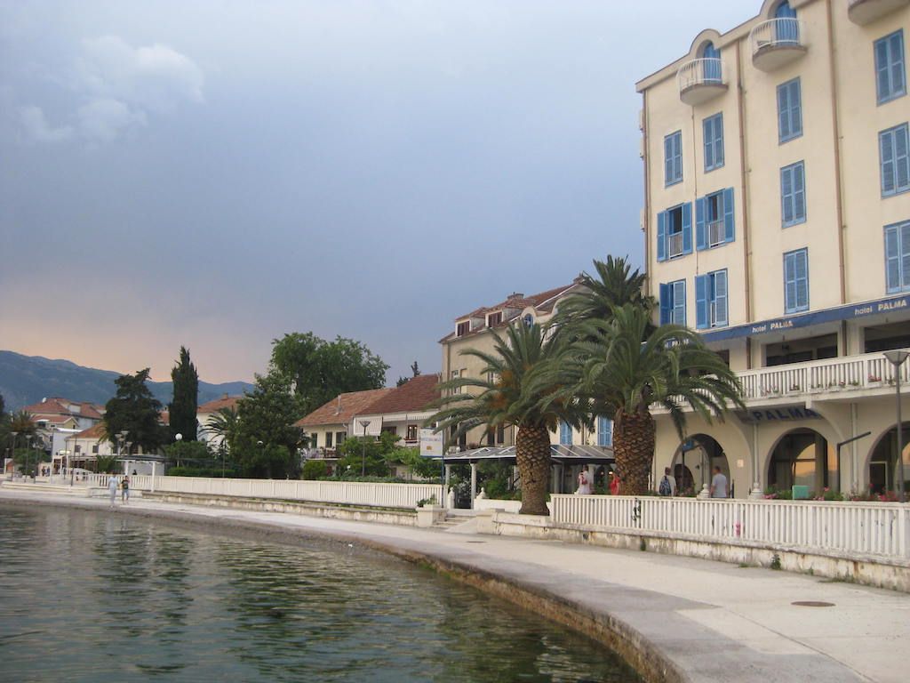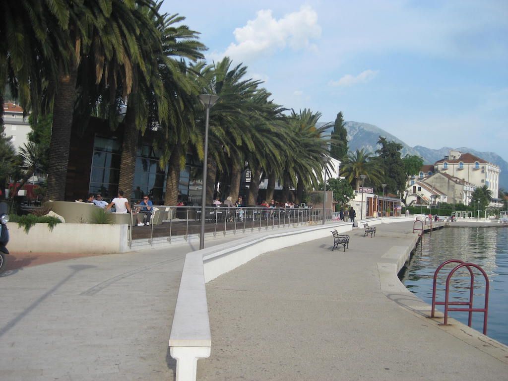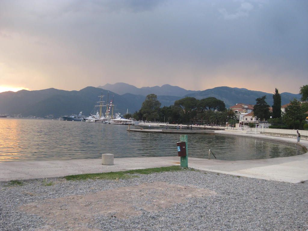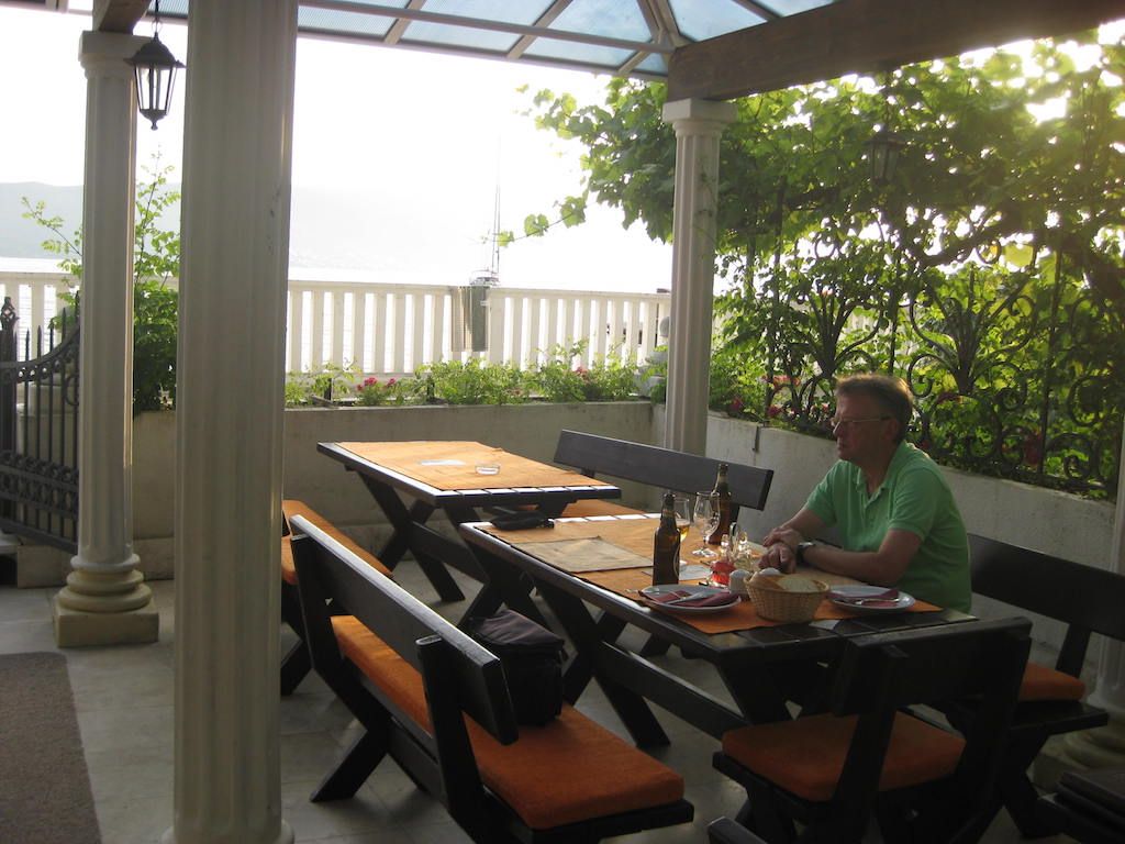Hier haben wir beim ersten Versuch Glück mit dem Quartier. Tivat hat sich im Hafenbereich seit dem letzten Jahr zum positiven verändert. An der Promenade viele neue Cafe´s und Bars. Auch der Hafen wurde weitergebaut. Hier liegen schon einige Megajachten. Das Abendessen gibt es im Außenbereich vom Hotel „ Palma „. Richtig gutes und leckeres Essen mit sehr freundlicher Bedienung. Das Wetter zieht auf einmal zu. Dunkle Wolken ziehen auf. Nicht schon wieder wie vor einem Jahr, als wir hier 2 Tage festgesessen haben. Zum Glück verziehen sich die dunklen Wolken aber wieder. Danach noch ein letzter Gang durch Tivat. Einen Absacker gibt es in der Baustoffkneipe. Hier kann man Baumaterialien kaufen, aber im gleichen Raum ist auch eine Kneipe. Einheimische sitzen hier und spielen Karten und trinken. Zuerst schauen sie, nach dem Bestellen gehörten wir dazu. Von Burkhard und seiner Frau bekamen wir um 00.08 Uhr eine sms aus Mallorca. Dabei müsste er doch wissen, wann wir immer auf der Tour ins Bett gehen. Zum Glück haben wir sie erst am anderen Morgen bemerkt.