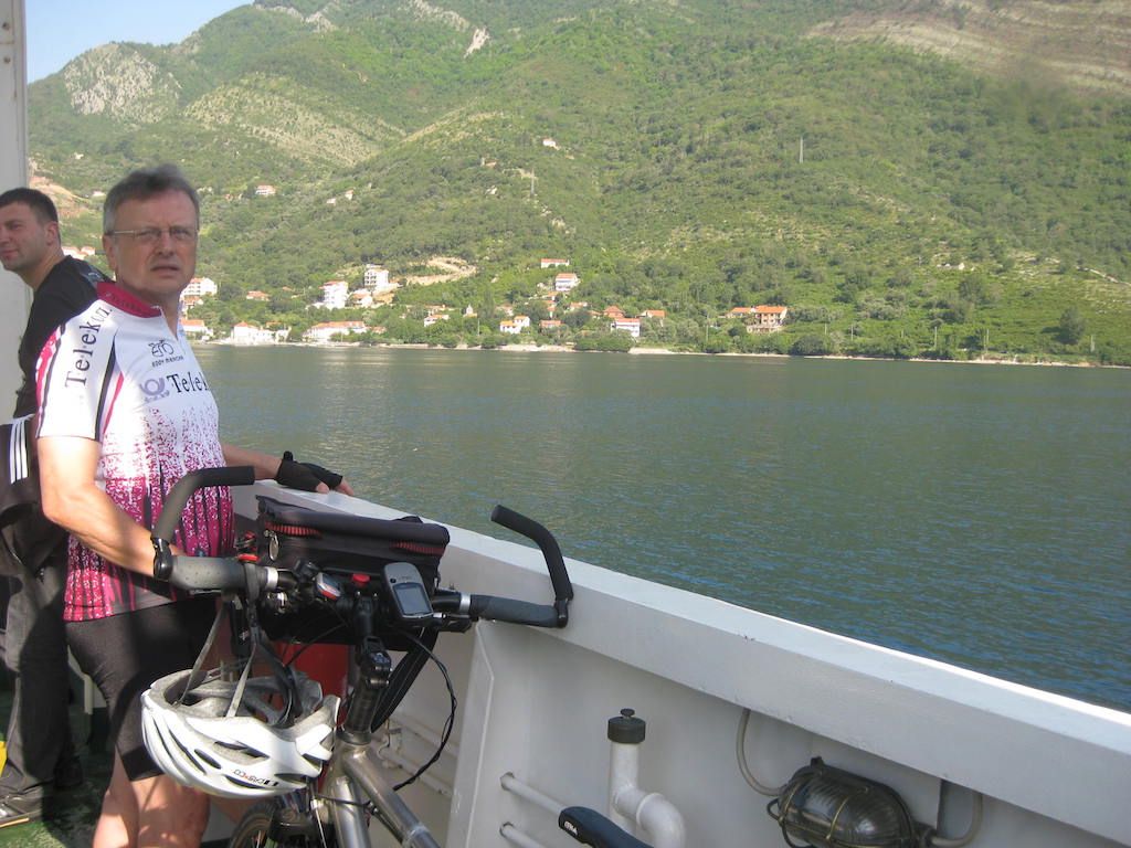 Nach dem Frühstück für 0,89 Euro ( 4 Scheiben Wurst, 4 Scheiben Käse und ein halbes Weißbrot ) ging es nach Cavtat. Schnell waren wir an der Fähre, die den Weg zur Bucht von Kotor abkürzt. Dieter wollte nicht die ganze Bucht abfahren, mit Burkhard hatte ich letztes Jahr noch die ganze Bucht umrundet. Die Fähre wartete bereits und so waren wir schnell auf der anderen Seite. Die Fahrt verlief bei schönem warmen Wetter problemlos.