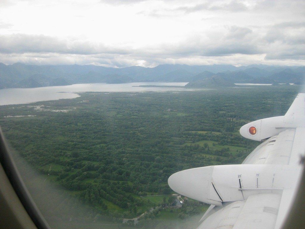 Mein Sohn bringt mich zum Flughafen nach Frankfurt. Das Einchecken beginnt um 12.30 Uhr. Das Fahrrad kann ich dann am Großgepäckschalter abgeben. Alles kein Problem. Pünktlich um 14.50 Uhr hebt die Maschine von Montenegro Airlines in Richtung Montenegro ab. Unterwegs viele Wolken. Nach nicht ganz zwei Stunden und einer Schleife über den Skhodrasee, landen wir in Podgorica.