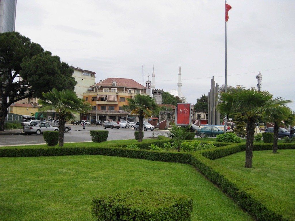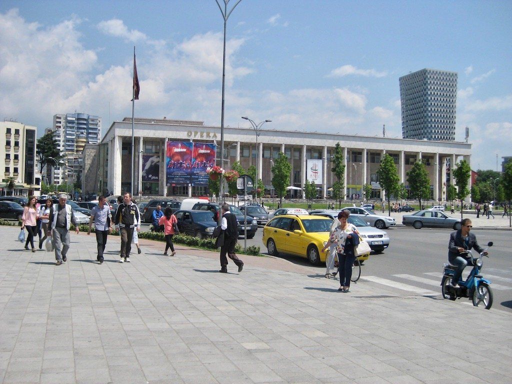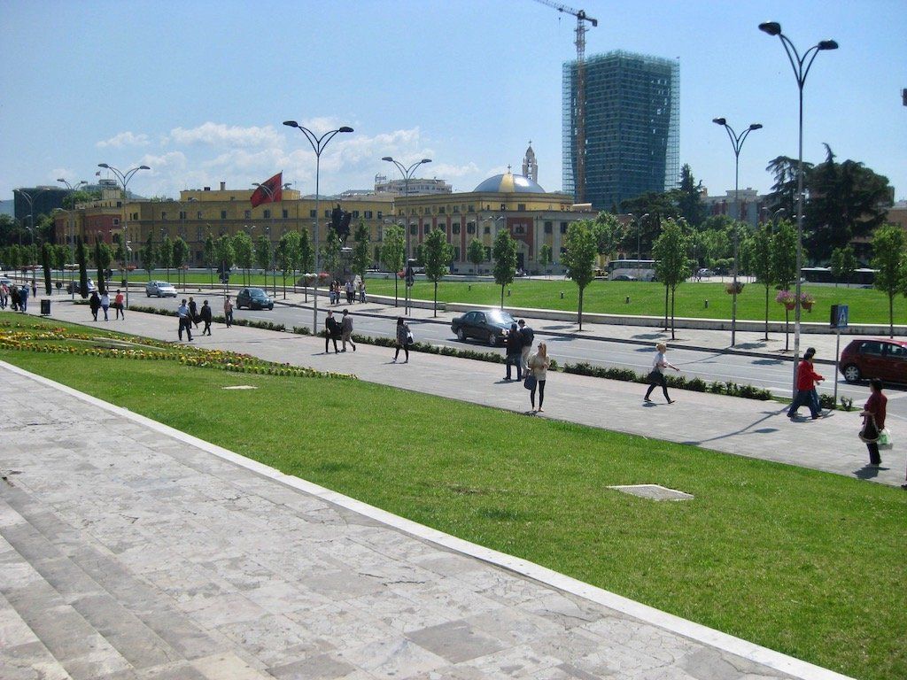 Dann geht es bis nach Tirana fast nur noch abwärts. Bei der Stadteinfahrt muss ich mich erst einmal zurecht finden. Ich habe das Hotel Patricia vorgebucht. Dieses liegt in der Nähe vom Skanderbergplatz. Die Wirklichkeit vor Ort oder eine Ansicht über Google – Earth sehen doch ein wenig anders aus. Ich frage mich zum Hotel durch. Der Hotelinhaber spricht perfekt deutsch und versorgt mich mit einigen Tipps für den Stadtrundgang. Dann beginnt für mich zu Fuß der Marsch zu den Highlights von Tirana: Skanderbegplatz, Nationalmuseum, Et´hem Bey – Moschee, Pyramide usw. Tirana blüht auf und hat viele schöne Parks. Eine schöne Stadt mit gut 400000 Einwohnern.