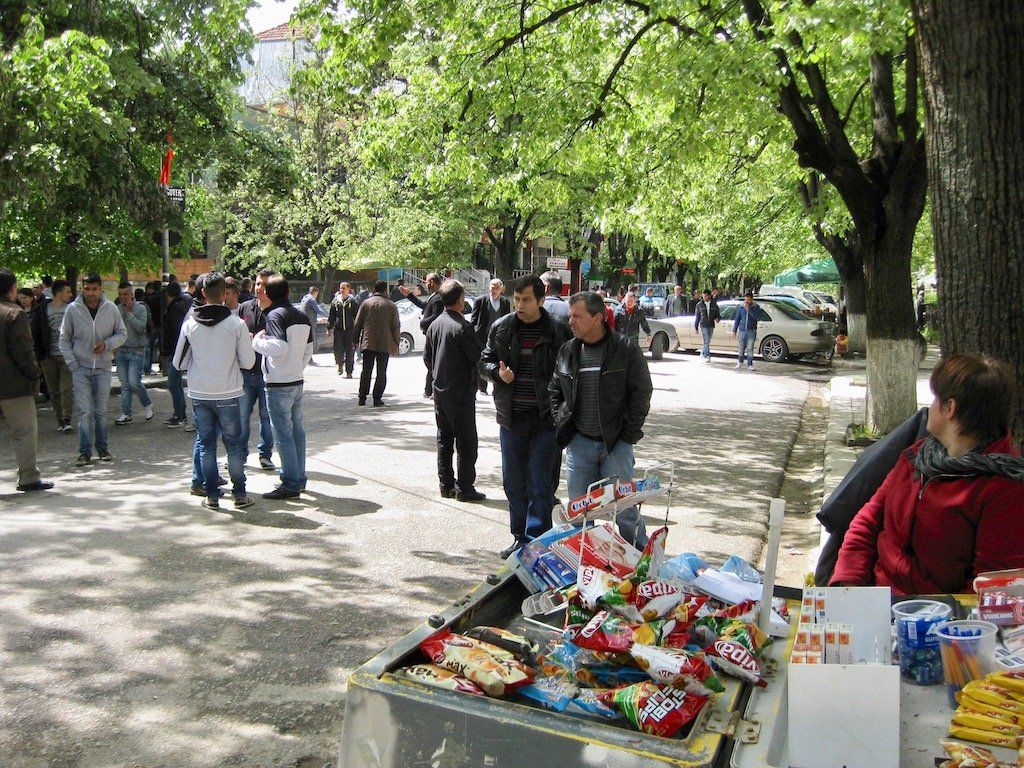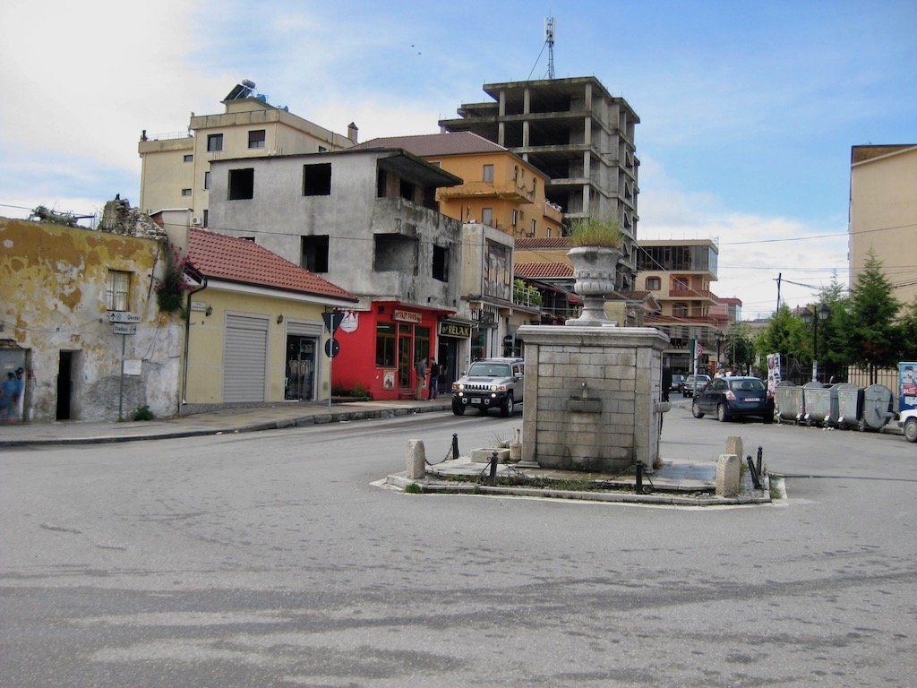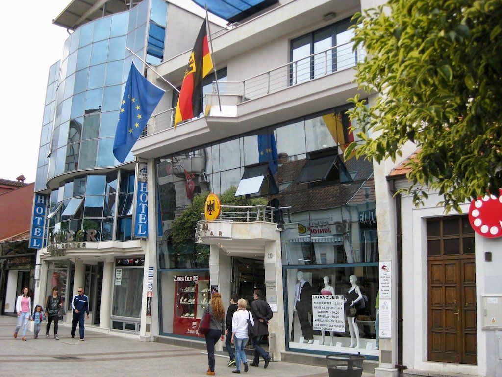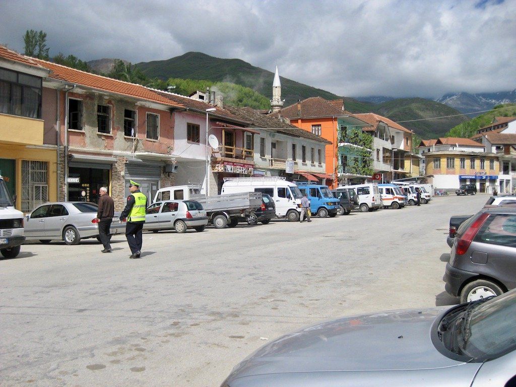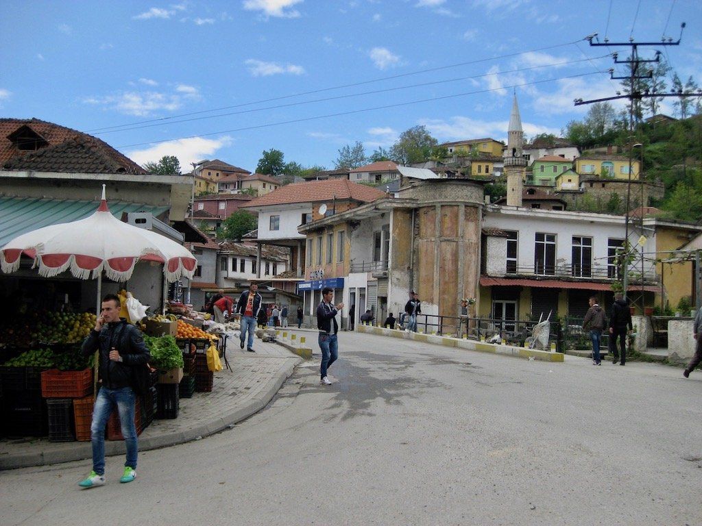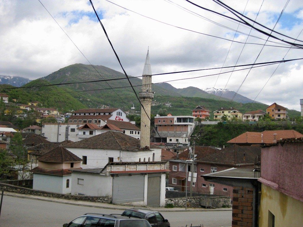 Durch die Autofahrt erreiche ich Peshkopi dann doch schon am frühen Nachmittag. Hier checke ich im Hotel Piazza ein. Das Rad kommt in die Tiefgarage. Wäsche waschen, die Sonne ist jetzt durchgekommen und die Sachen auf dem Balkon trocknen gut. Danach geht es zum Sightseeing nach draußen. Der Ort hat ca. 13000 Einwohner und ist stark muslimisch geprägt. Das Hotel liegt in der Fußgängerzone und unglaublich viele Leute sind auf der Straße, allerdings überwiegend Männer, viele sitzen in den Cafes und trinken Kaffee. Muss hier eigentlich keiner arbeiten, oder ist die Arbeitslosigkeit hier so hoch ? In der Sonne ist es noch angenehm warm. Gegen 16:30 Uhr wird es empfindlich kühl und so suche ich bis zum Abendessen wieder das Hotel auf. Sogar die Klimaanlage schalte ich auf Warmluft. Zum Abendessen gehe ich ins Hotel Korabi, eine Empfehlung des Reiseführers, klasse Tipp. Nach dem Abendessen ist der Xihro ( Flanieren auf der Straße mit Sehen und Gesehen werden ) wohl schon auf Grund der Kälte vorbei. Die Straßen sind schon ziemlich leer, und so gehe ich nach einer letzten Runde durch den Ort auch ins Hotel.